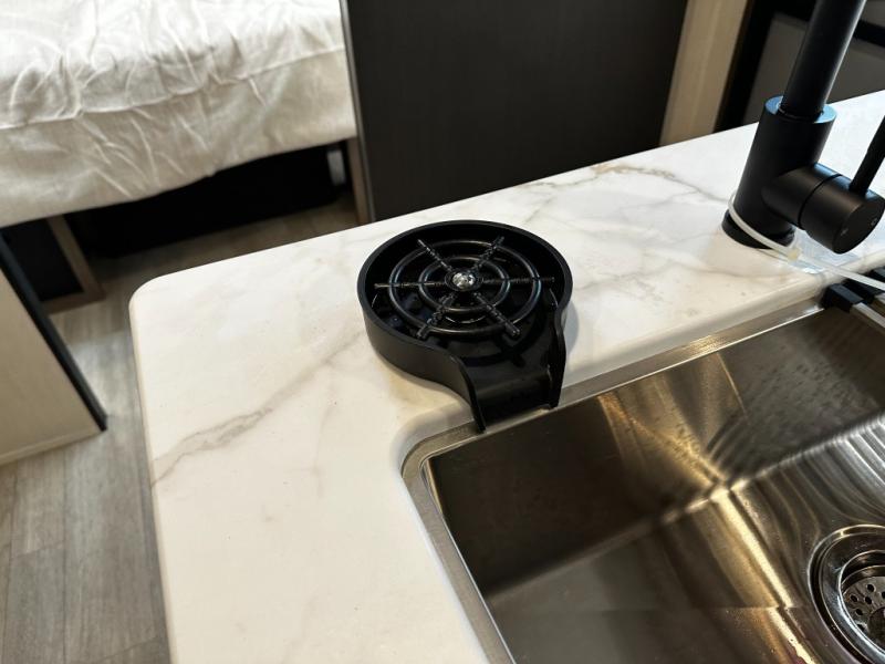 A kitchen designed for easy meal prep on the road