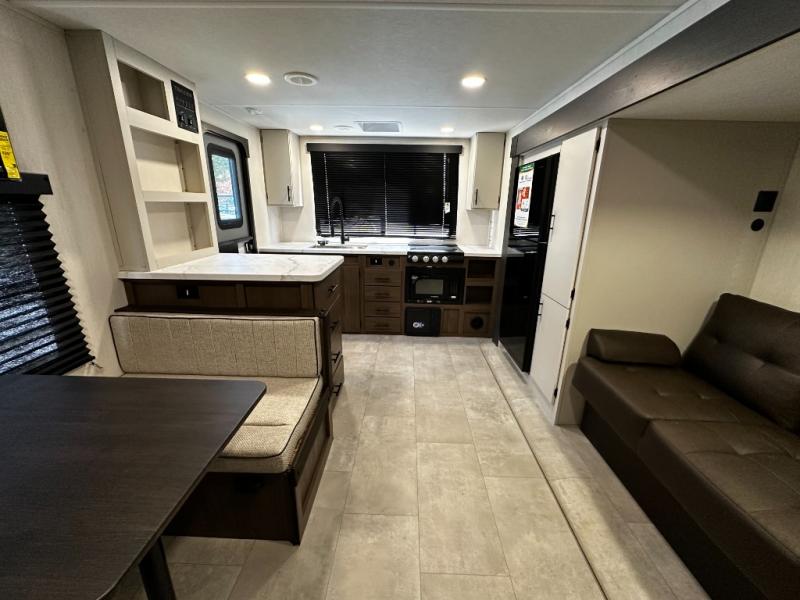 Inside the 245RKLC, you’ll find a thoughtfully designed living space that maximizes comfort and usability. The master bedroom offers a cozy retreat, while the fully equipped kitchen features modern appliances, generous counter space, and clever storage to make meal prep effortless. The open-concept living area creates a welcoming environment for relaxing or entertaining, while premium finishes and durable materials ensure long-lasting quality and reliability. This travel trailer blends luxury and practicality, giving you a home-away-from-home experience wherever the road takes you.