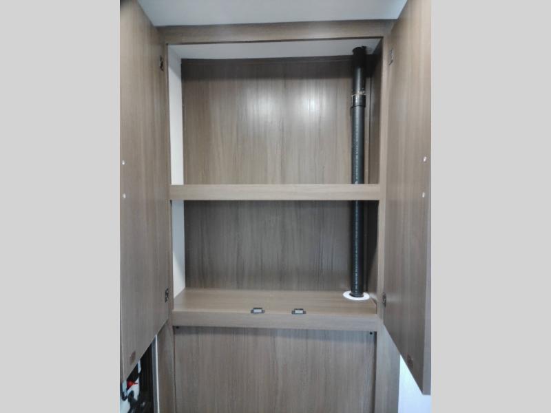 This model is built for easy towing and big adventure. With a tankless water heater, 12-volt refrigerator, and integrated LED awning lights, it combines everyday convenience with camping luxury. Its bunk beds and queen bed setup make it a great fit for families or guests.