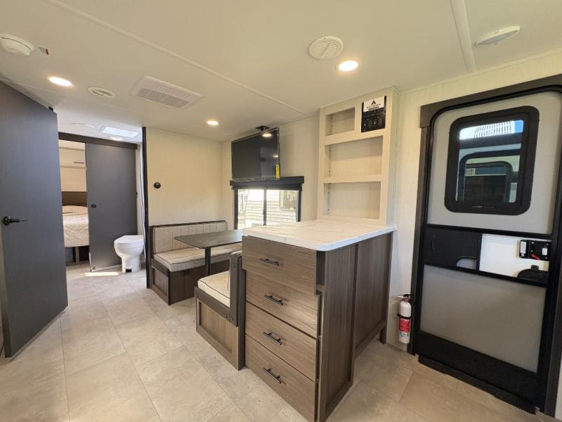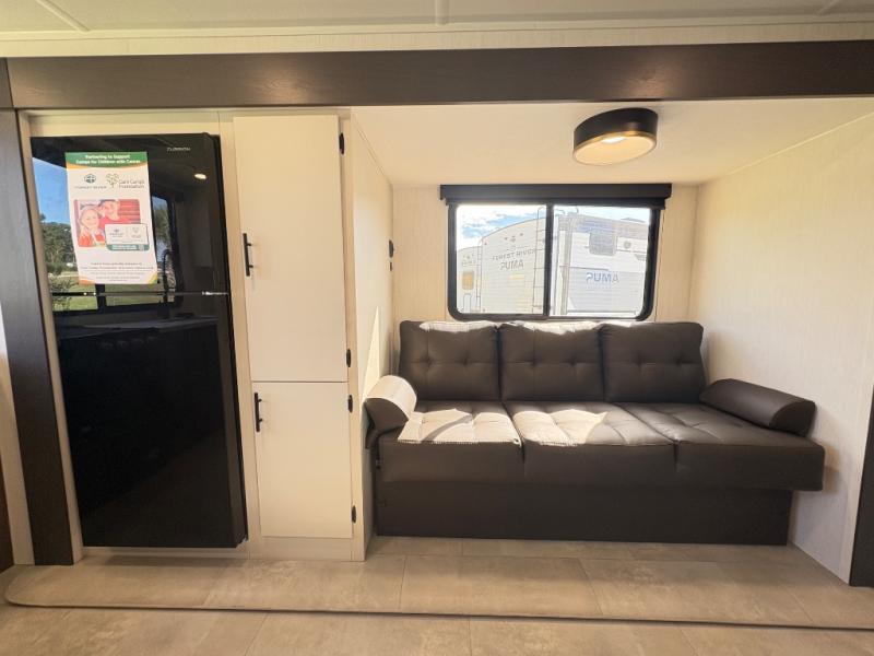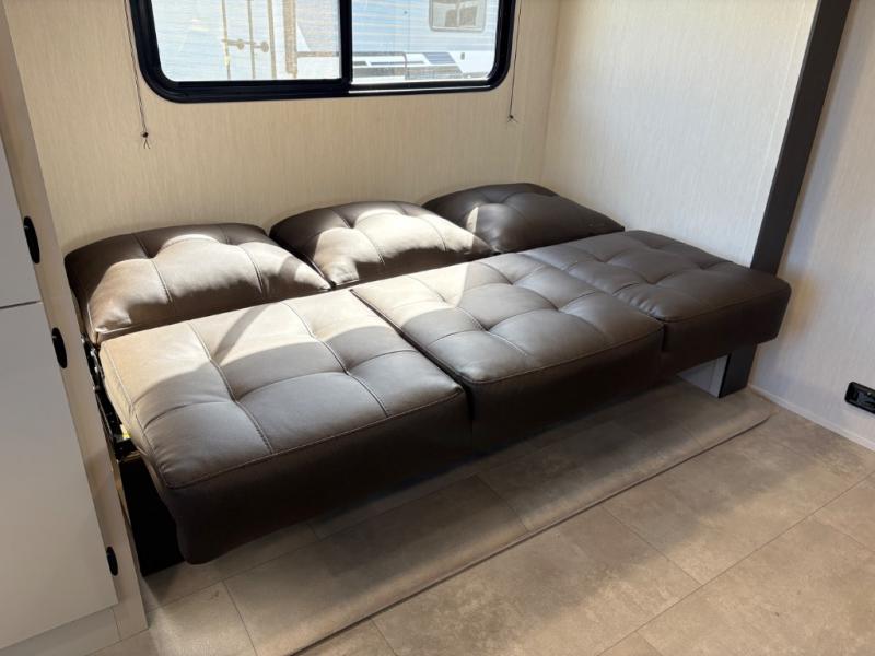 - Sofa slide-out and booth dinette for comfortable lounging and dining