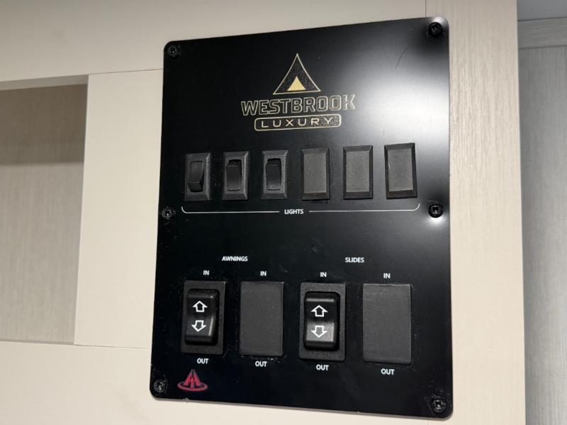 Full systems monitor panel, 12 V high-capacity water pump, black tank flush system.