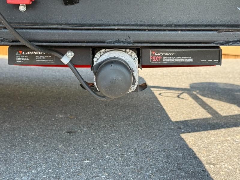 Power stabilizer jacks and a power tongue jack with convenience light.