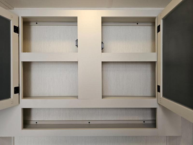 Residential drawer glides, two-toned cabinetry, and seamless Congoleum flooring that combine modern aesthetics with everyday practicality.