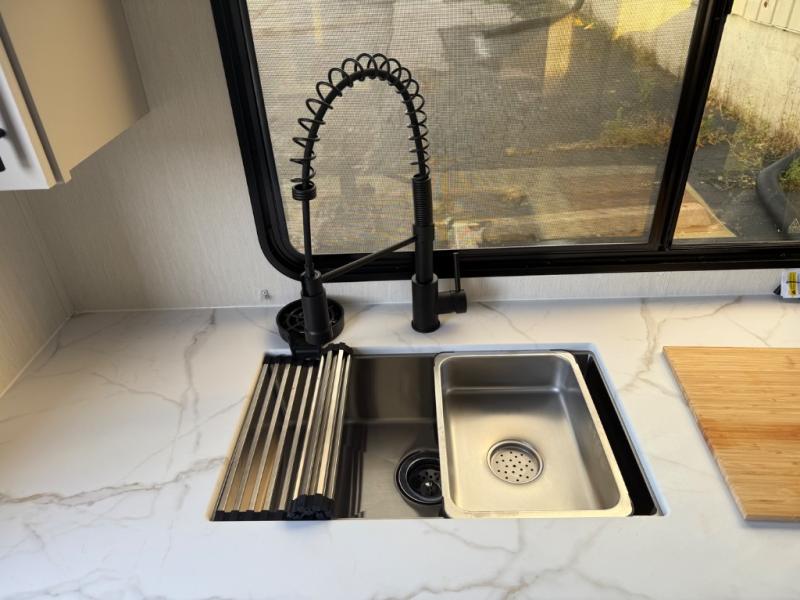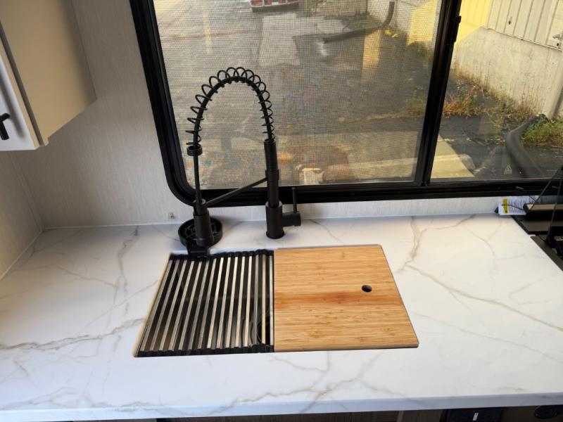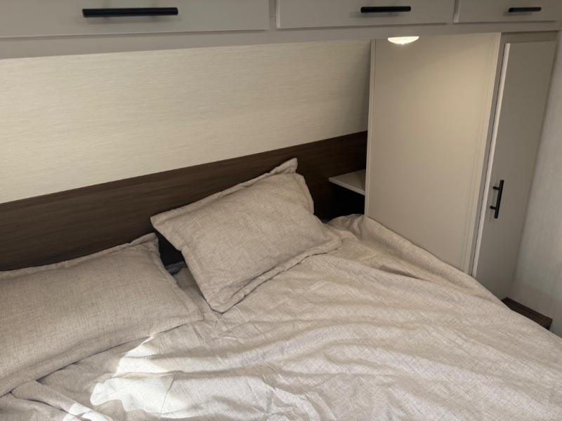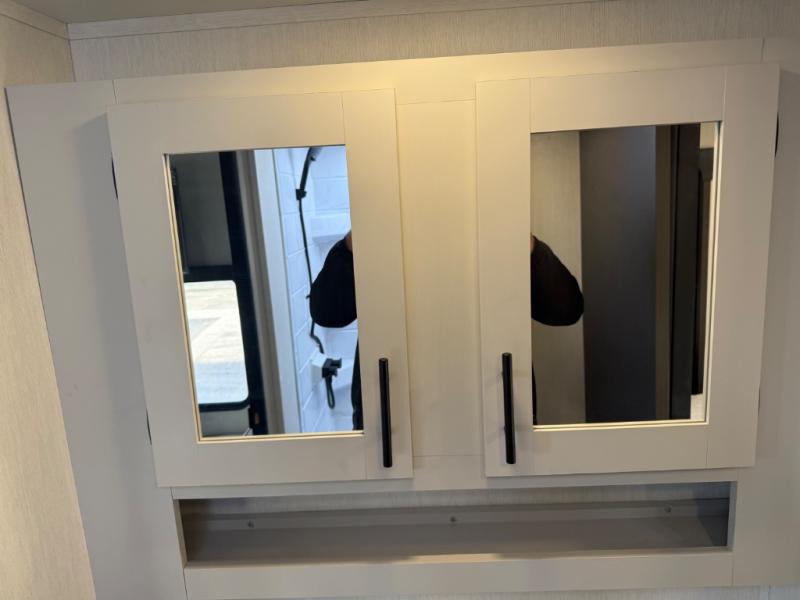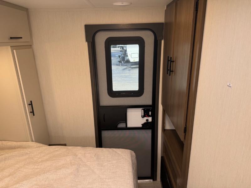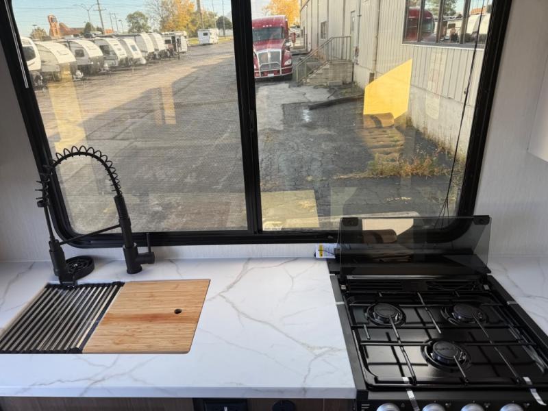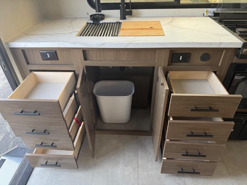 Every trip in this luxury travel trailer will be one to remember! Once you arrive at your destination, you can unload the pass-through storage, put out the 19' LED lit power awning, and grab a cold drink from the outside mini fridge. There are also dual entry doors which will allow you to enter in through the rear kitchen or the front master bedroom. A camp king bed with an ottoman underneath will provide a great night's rest, and the walk-thru bath is easily accessible for everyone to use. While the chef of your group makes dinner in the kitchen, your crew can relax on the sofa slide out or play a game at the booth dinette!