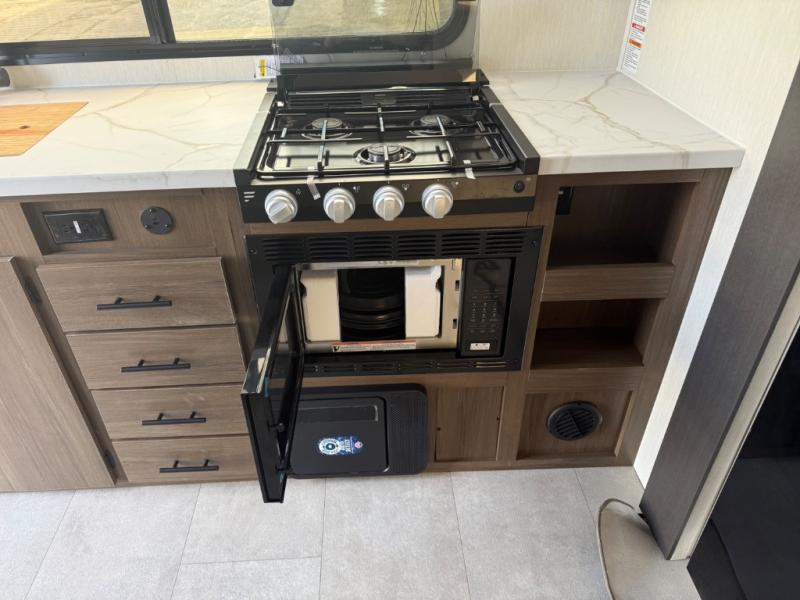 With any Westbrook Luxury travel trailer by Forest River, you will enjoy high-end features to make each journey count! There is a backup camera outside for hassle-free parking, along with power stabilizer jacks, a tire pressure monitoring system, and Deluxe Knight graphics package. Each travel trailer is built with an aerodynamic smooth front cap, an enclosed and heated underbelly, a fully walkable roof, and premium alloy wheels for added strength. You will love the seamless Carefree Congoleum flooring inside, along with residential extended ball bearing drawer glides, two-toned custom cabinetry, and a shower surround with multiple ledges. An on-demand tankless water heater will provide hot water when you need it, and the 15,000 BTU ducted A/C plus auto ignition furnace are sure to keep you comfortable!
