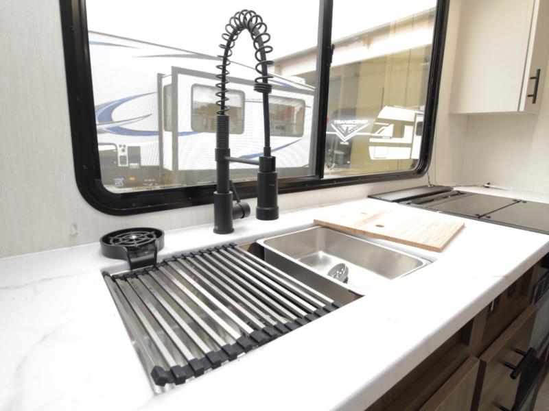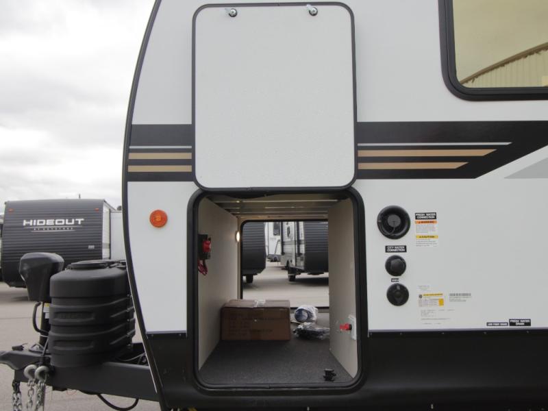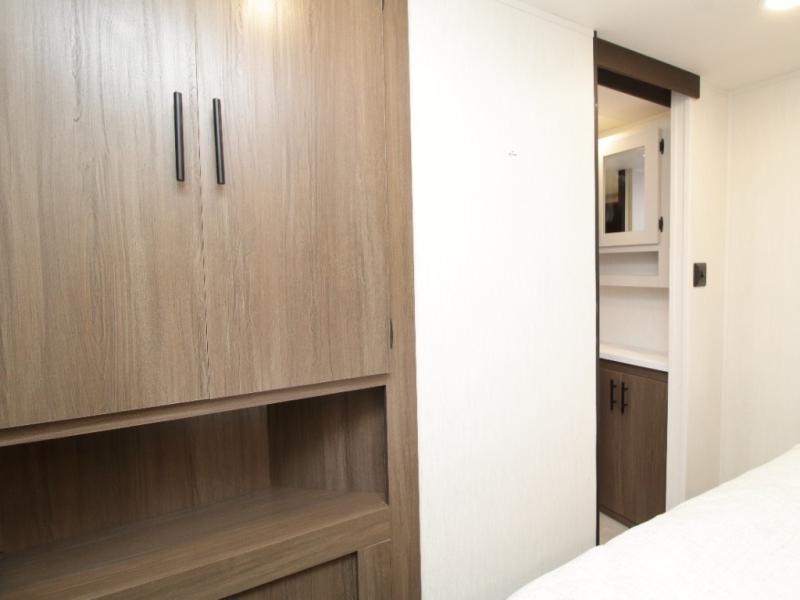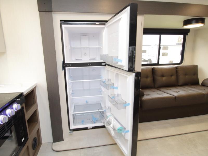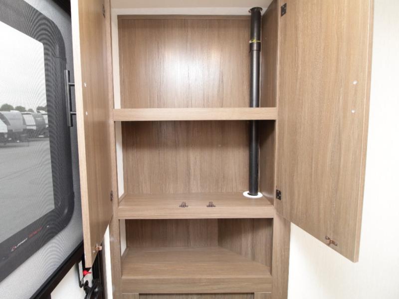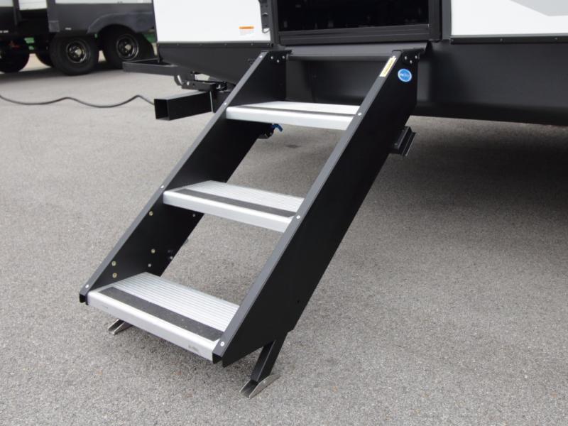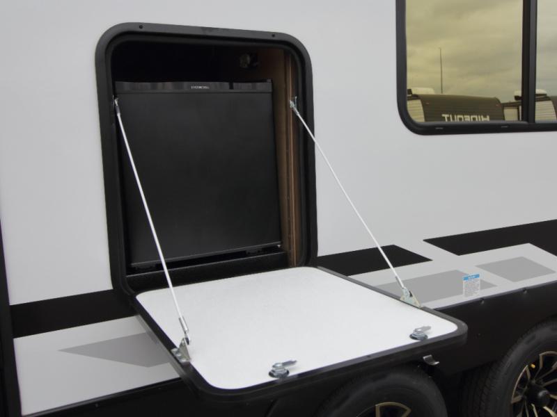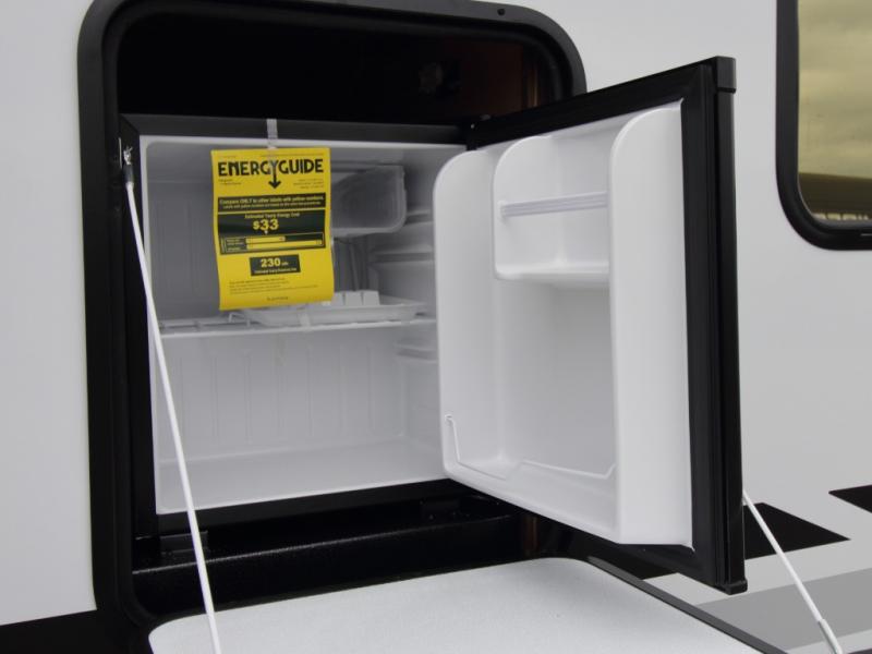 Outdoor Convenience – Make the most of your time outdoors with a 19' LED-lit power awning, outside mini refrigerator, and drop-frame pass-through storage for all your camping essentials.