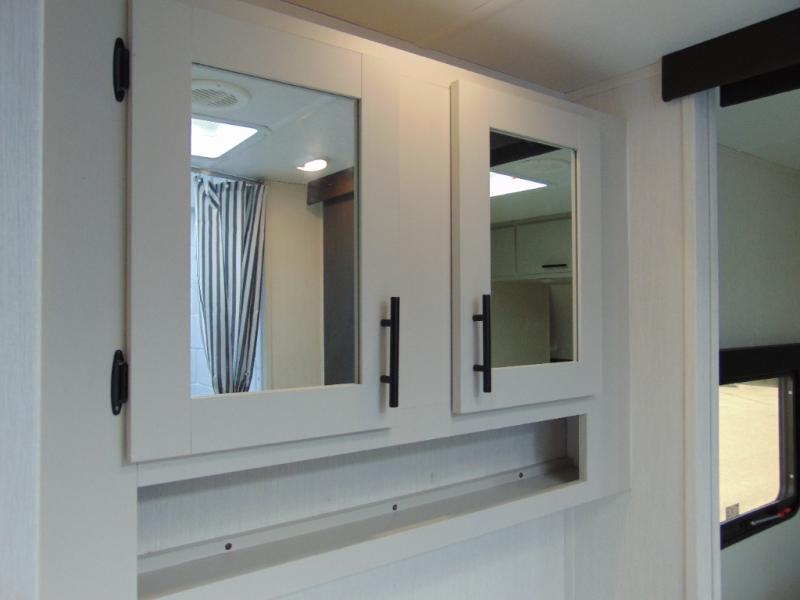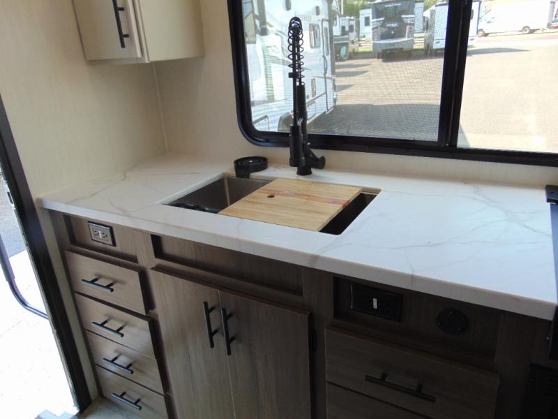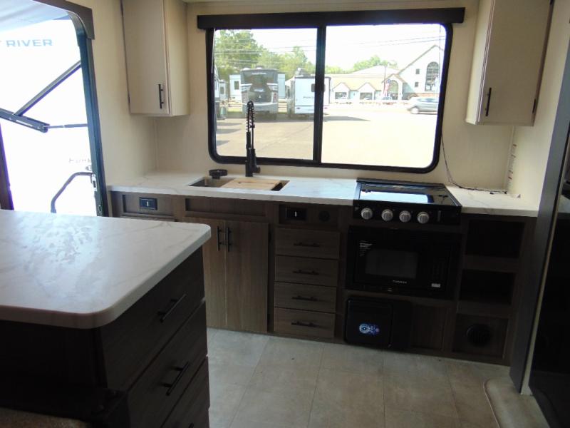 With any Westbrook Luxury travel trailer by Forest River, you will enjoy high-end features to make each journey count! There is a backup camera outside for hassle-free parking, along with power stabilizer jacks, a tire pressure monitoring system, and Deluxe Knight graphics package. Each travel trailer is built with an aerodynamic smooth front cap, an enclosed and heated underbelly, a fully walkable roof, and premium alloy wheels for added strength. You will love the seamless Carefree Congoleum flooring inside, along with residential extended ball bearing drawer glides, two-toned custom cabinetry, and a shower surround with multiple ledges. An on-demand tankless water heater will provide hot water when you need it, and the 15,000 BTU ducted A/C plus auto ignition furnace are sure to keep you comfortable!