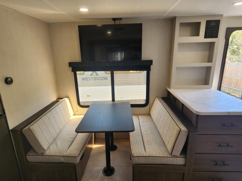 With any Westbrook Luxury travel trailer by Forest River, you will enjoy high-end features to make each journey count! There is a backup camera outside for hassle-free parking, along with power stabilizer jacks, a tire pressure monitoring system, and Deluxe Knight graphics package. Each travel trailer is built with an aerodynamic smooth front cap, an enclosed and heated underbelly, a fully walkable roof, and premium alloy wheels for added strength. You will love the seamless Carefree Congoleum flooring inside, along with residential extended ball bearing drawer glides, two-toned custom cabinetry, and a shower surround with multiple ledges. An on-demand tankless water heater will provide hot water when you need it, and the 15,000 BTU ducted A/C plus auto ignition furnace are sure to keep you comfortable! ?? Top Features & Highlights