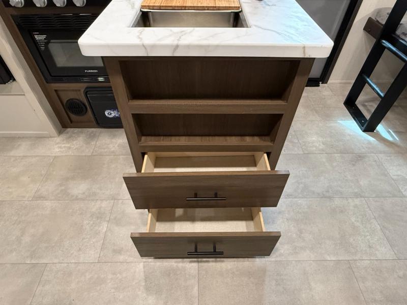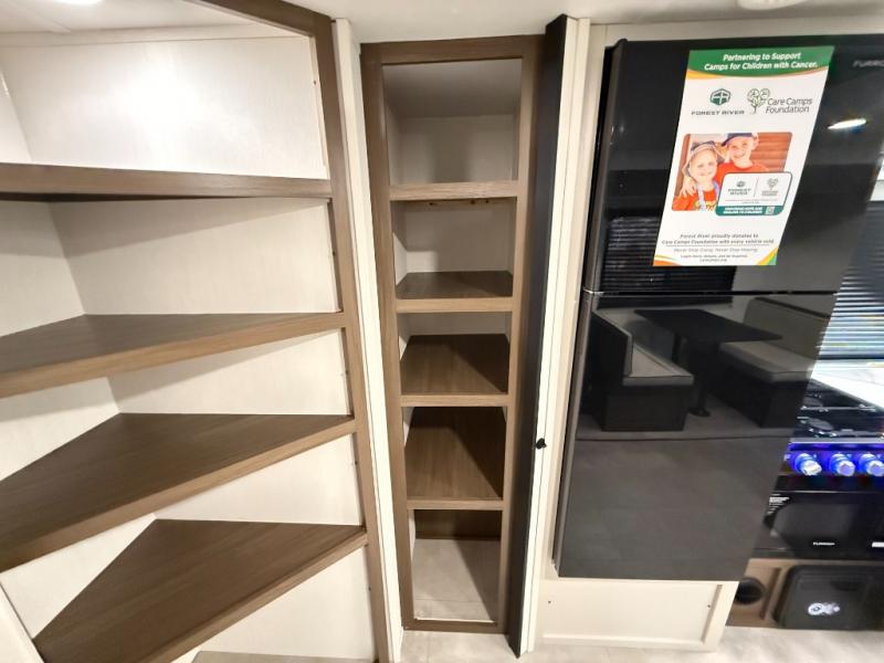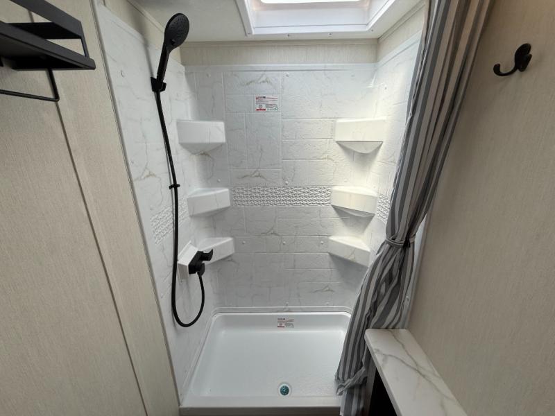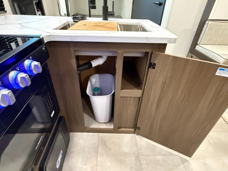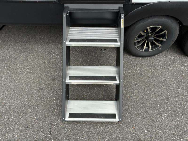 AWNING & Outdoor Features: LED-lit power awning, exterior shower, LP grill quick-connect, outside mini-fridge & pass-through storage