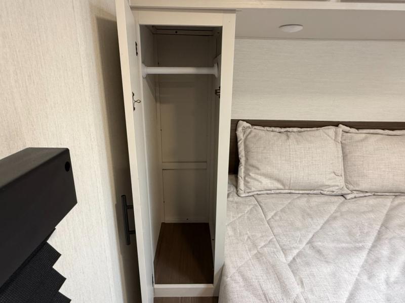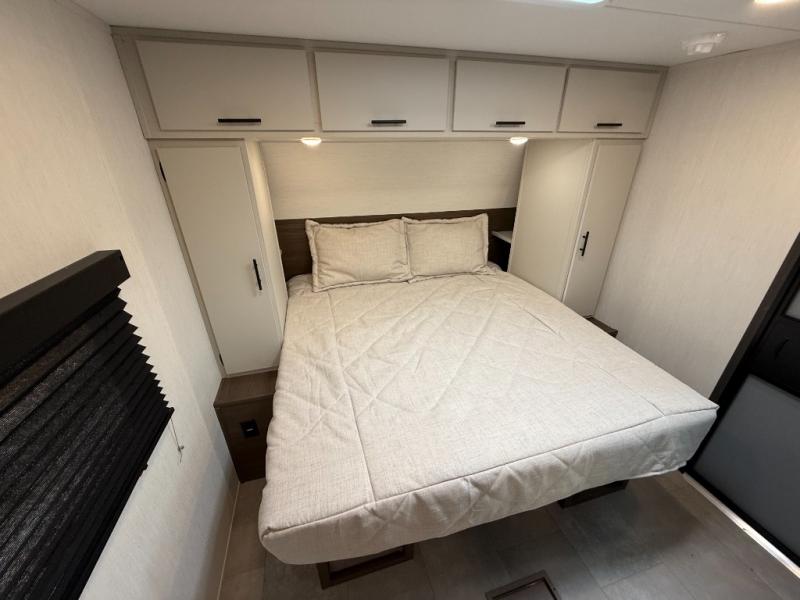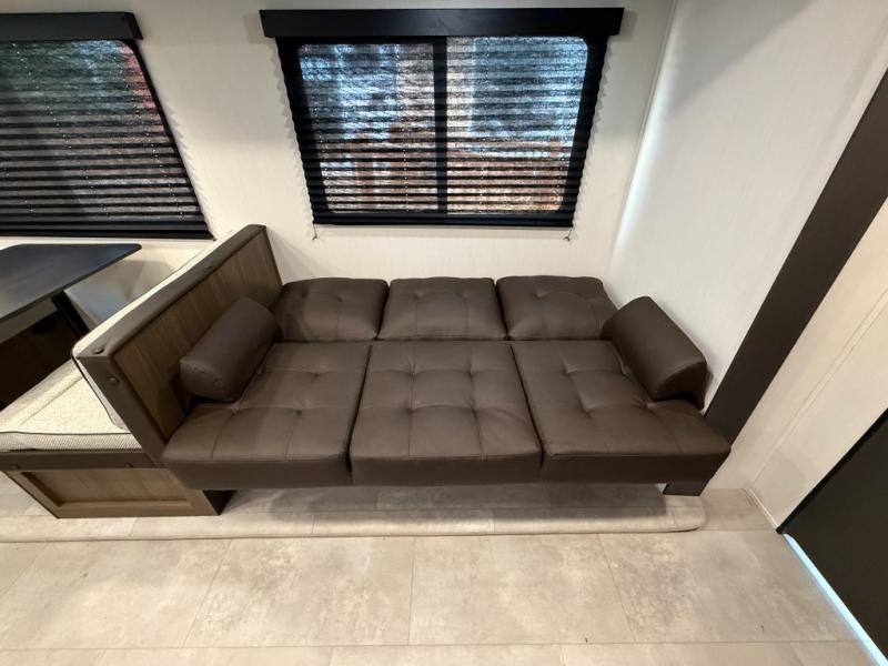 Sleeping Capacity: Up to 8–10 (private front queen, double-over-double rear bunks, jackknife sofa + booth dinette)
