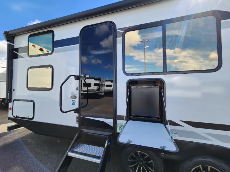 With any Westbrook Luxury travel trailer by Forest River, you will enjoy high-end features to make each journey count! There is a backup camera outside for hassle-free parking, along with power stabilizer jacks, a tire pressure monitoring system, and Deluxe Knight graphics package. Each travel trailer is built with an aerodynamic smooth front cap, an enclosed and heated underbelly, a fully walkable roof, and premium alloy wheels for added strength. You will love the seamless Carefree Congoleum flooring inside, along with residential extended ball bearing drawer glides, two-toned custom cabinetry, and a shower surround with multiple ledges. An on-demand tankless water heater will provide hot water when you need it, and the 15,000 BTU ducted A/C plus auto ignition furnace are sure to keep you comfortable!
