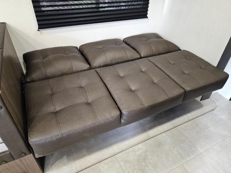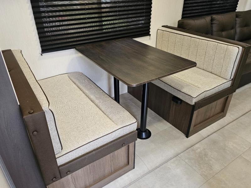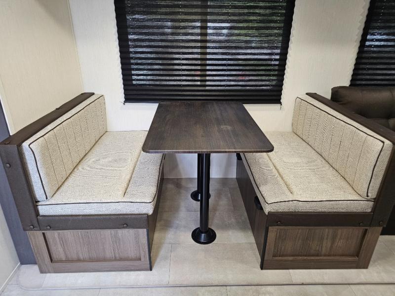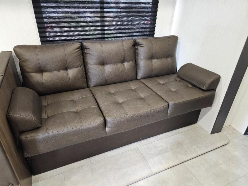 Sofa and booth dinette within the large slide can convert to additional sleeping space