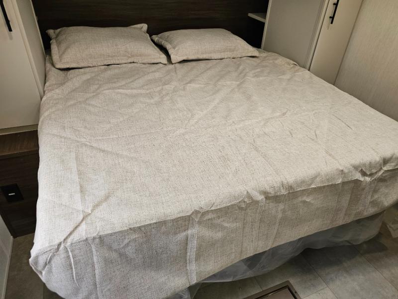 Front private bedroom with camp king bed and ottoman for extra seating/storage