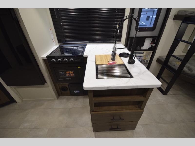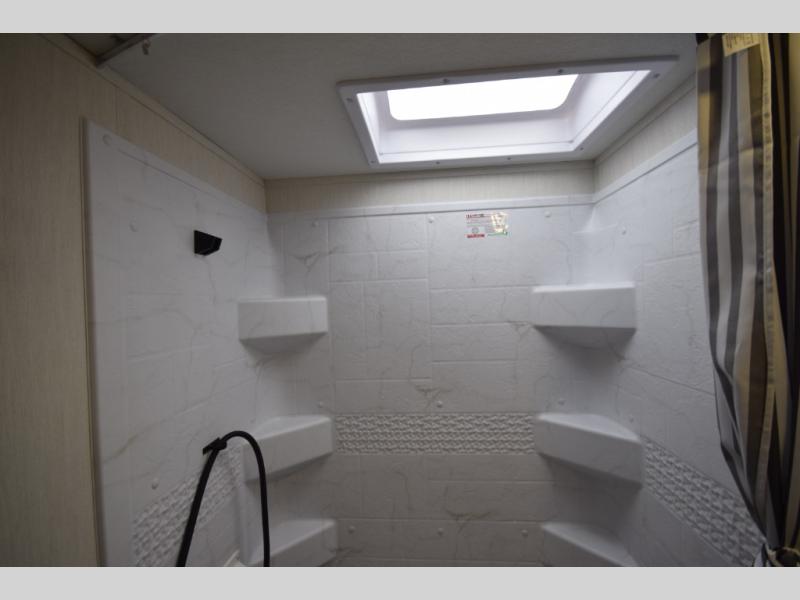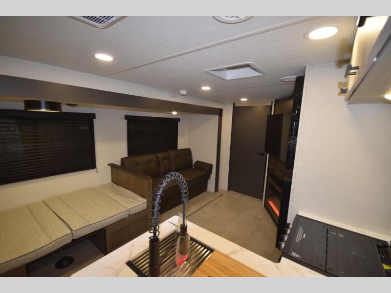 Enjoy privacy and convenience with a spacious rear bath that keeps the rest of the trailer open and functional—perfect for busy mornings or winding down at night.