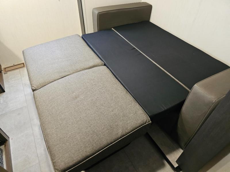 Large booth dinette and jackknife sofa in the main living area convert into additional sleeping space