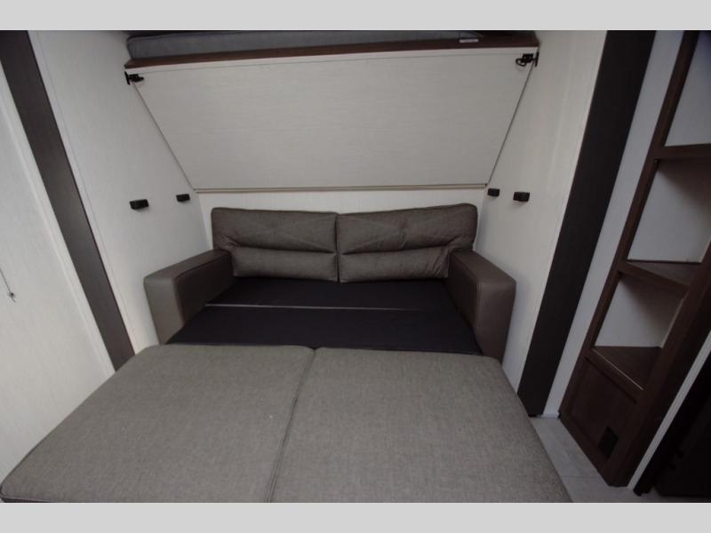 Spacious Rear Bunkhouse includes a sofa bed and booth dinette, perfect for kids or guests