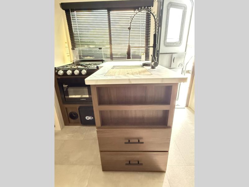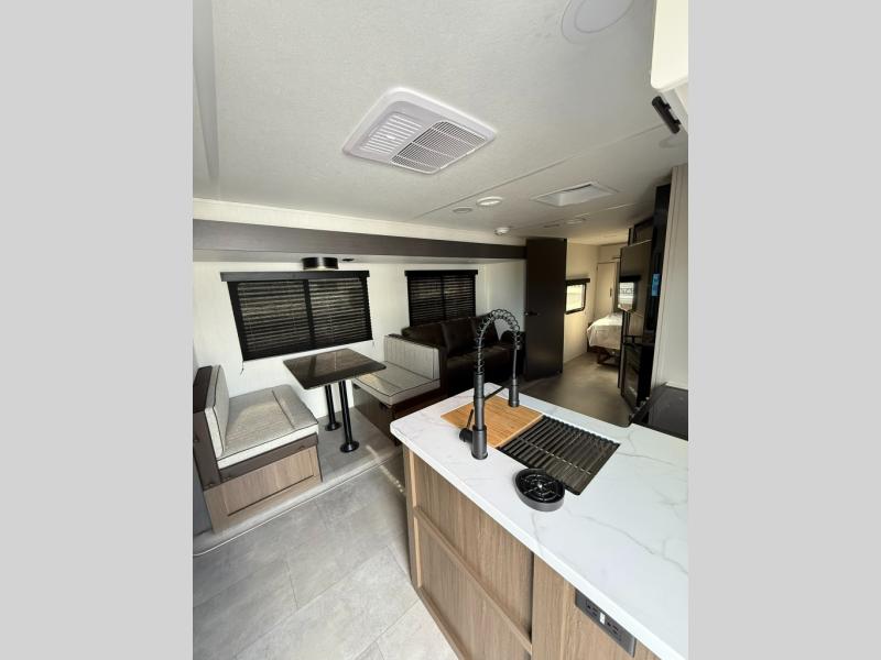 With any Westbrook Luxury travel trailer by Forest River, you will enjoy high-end features to make each journey count! There is a backup camera outside for hassle-free parking, along with power stabilizer jacks, a tire pressure monitoring system, and Deluxe Knight graphics package. Each travel trailer is built with an aerodynamic smooth front cap, an enclosed and heated underbelly, a fully walkable roof, and premium alloy wheels for added strength. You will love the seamless Carefree Congoleum flooring inside, along with residential extended ball bearing drawer glides, two-toned custom cabinetry, and a shower surround with multiple ledges. An on-demand tankless water heater will provide hot water when you need it, and the 15,000 BTU ducted A/C plus auto ignition furnace are sure to keep you comfortable!