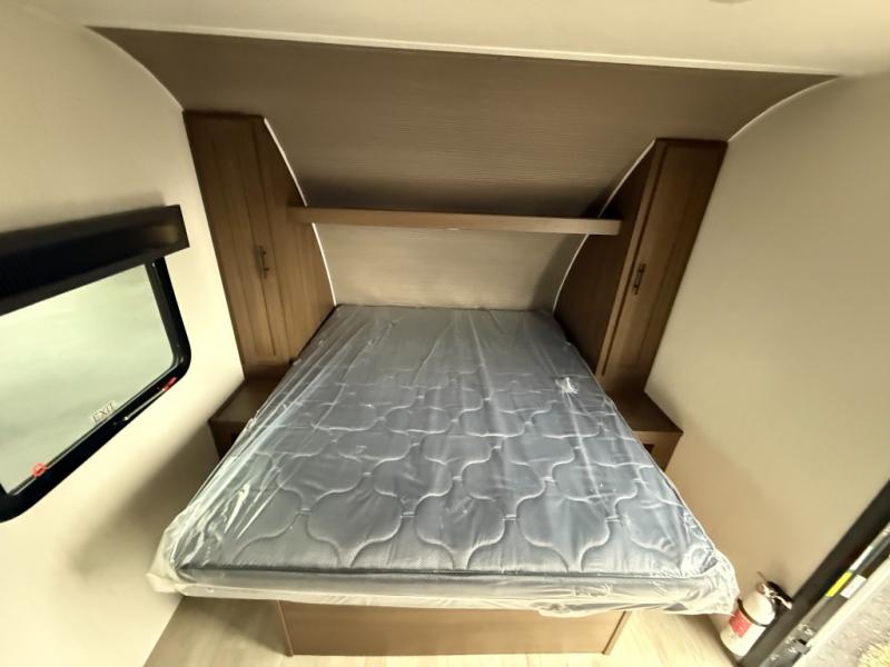 Each travel trailer by Forest River includes Hyper Lyte construction and a durable laminated "Aluma Frame" for years of use. The heated and enclosed underbelly allows you to extend your camping season, and the walk-on truss roof with XTRM PVC roofing will be easy to keep clean. Inside, you'll enjoy the custom built cabinetry, solid surface thermofoil wrapped kitchen countertops, and ultra bright LED lighting throughout. These models also include cable and satellite prep and a digital TV antenna with a booster so you can stay connected to the outside world if you choose. Make the easy choice and choose a Vibe travel trailer today!