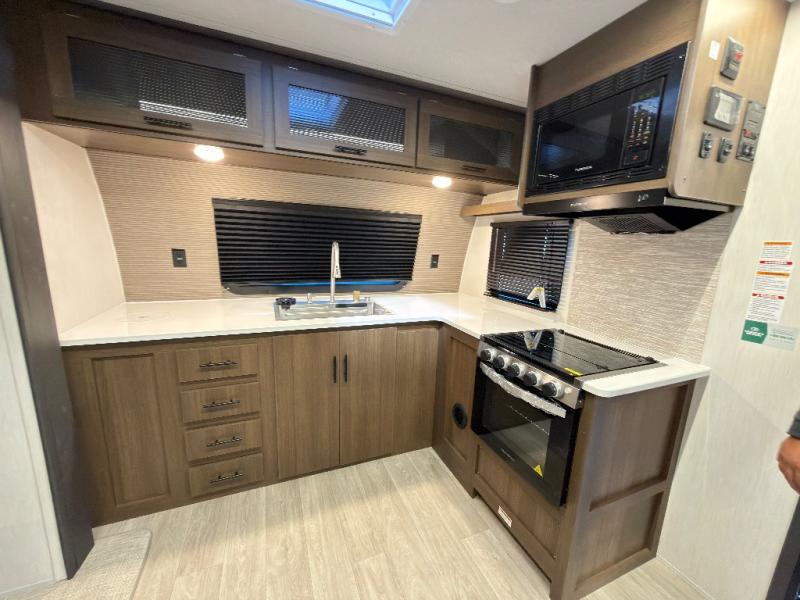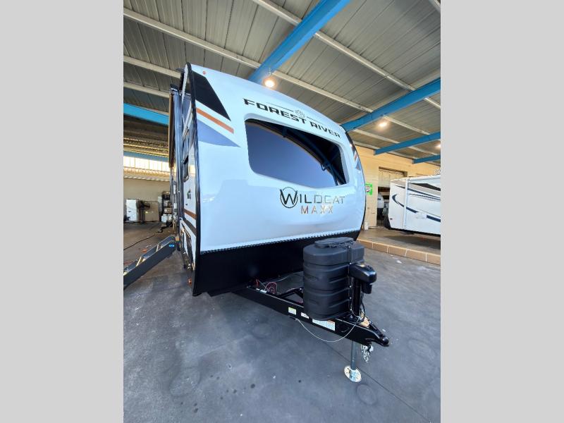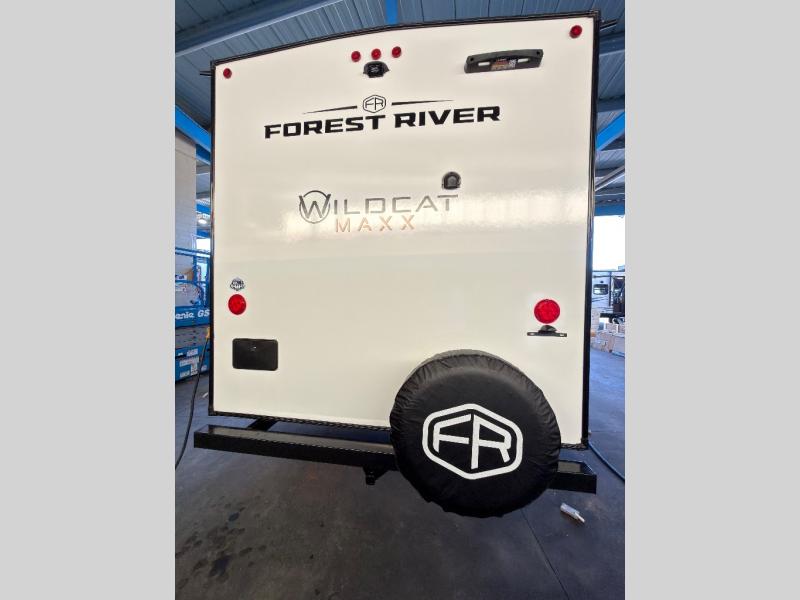 Each Forest River Wildcat MAXX travel trailer is constructed with 2" thick Vacuum-Bonded sidewalls, Maxx-strength aluminum-framed laminated floor, and reflective Astro-Foil insulation in the roof for added protection. The Dynamic Technology Package includes a frame-mounted receiver hitch, a battery disconnect, and a 200-watt solar panel for off-grid capabilities. You will also enjoy the Peak Package with a power tongue jack, solid surface kitchen countertops, a 21" 2-In-1 range and oven, an on-demand tankless water heater, and more convenient features.