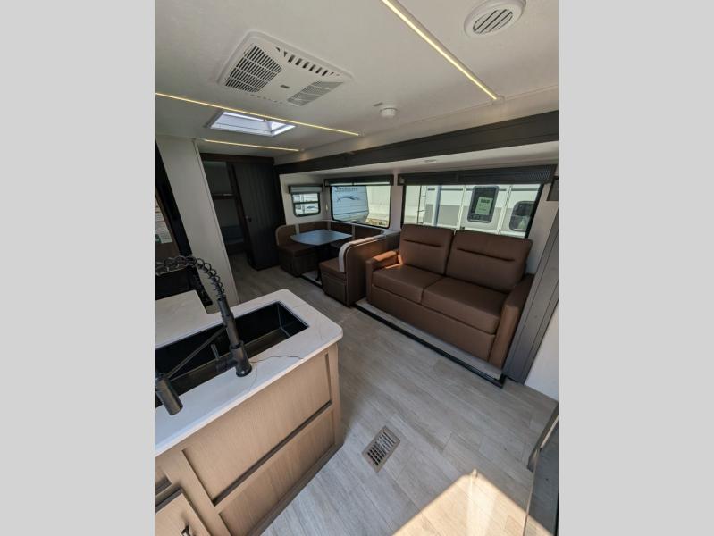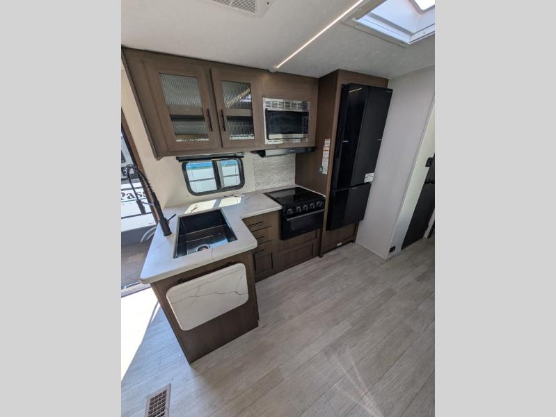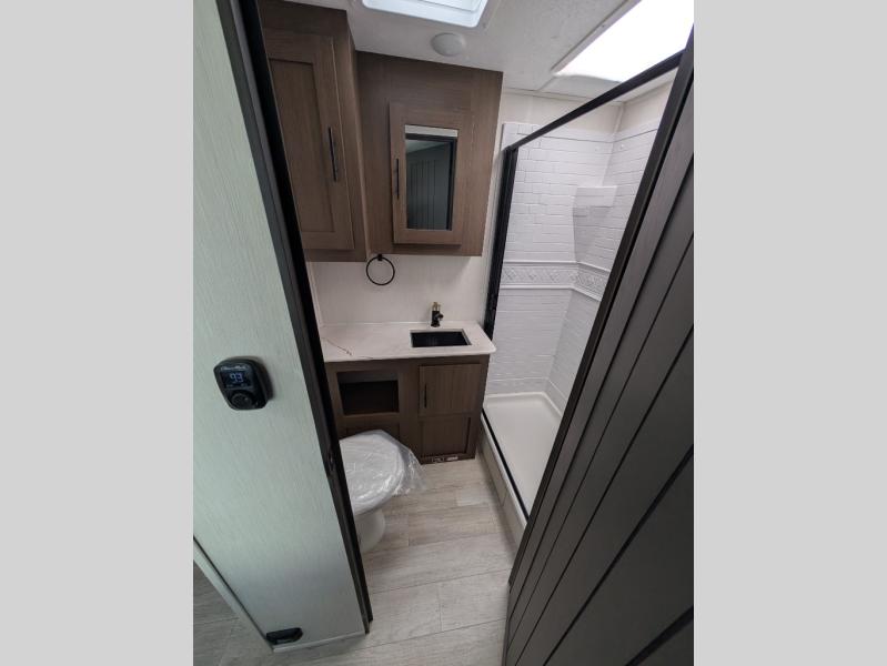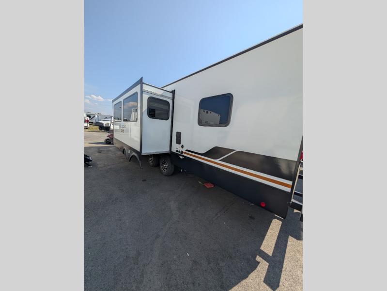 Each Vibe travel trailer by Forest River includes Hyper Lyte construction and a durable laminated "Aluma Frame" for years of use. The heated and enclosed underbelly allows you to extend your camping season, and the walk-on truss roof with XTRM PVC roofing will be easy to keep clean. Inside, you'll enjoy the custom built cabinetry, solid surface thermofoil wrapped kitchen countertops, and ultra bright LED lighting throughout. These models also include cable and satellite prep and a digital TV antenna with a booster so you can stay connected to the outside world if you choose. Make the easy choice and choose a Vibe travel trailer today!