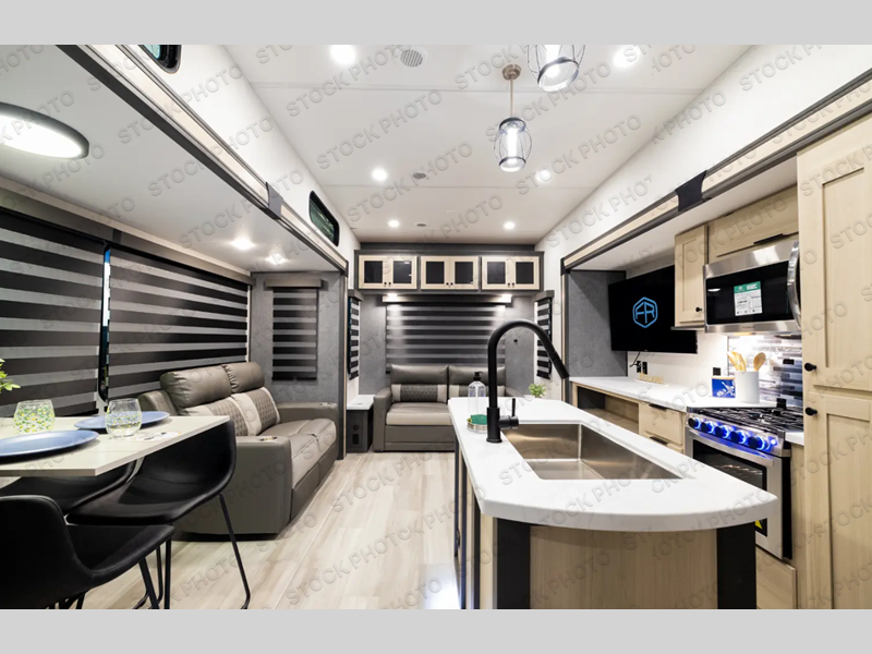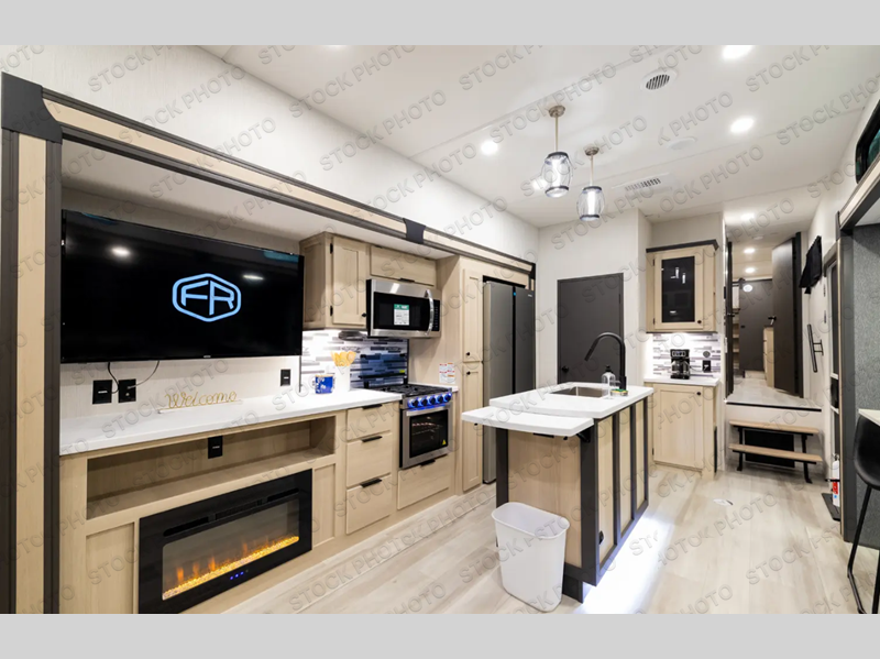 With any Wildcat fifth wheel by Forest River you will enjoy affordable luxury at every turn. These models are constructed with residential fiberglass insulation in the roof and floor, a 4'x6' sectioned underbelly armor, and a vacuum bonded, welded aluminum structure for added strength and durability. You will also find seamless roto-cast holding tanks, an outdoor shower, and 4-point auto leveling for quick and easy setup. Each model includes a best-in-class, high-efficiency 35,000 BTU furnace, along with an electric fireplace with thermostat control and remote, plus a 60,000 BTU tankless water heater for added convenience. There are carpet-free living spaces, residential backsplash, motion lighting throughout, and many more comforts!
