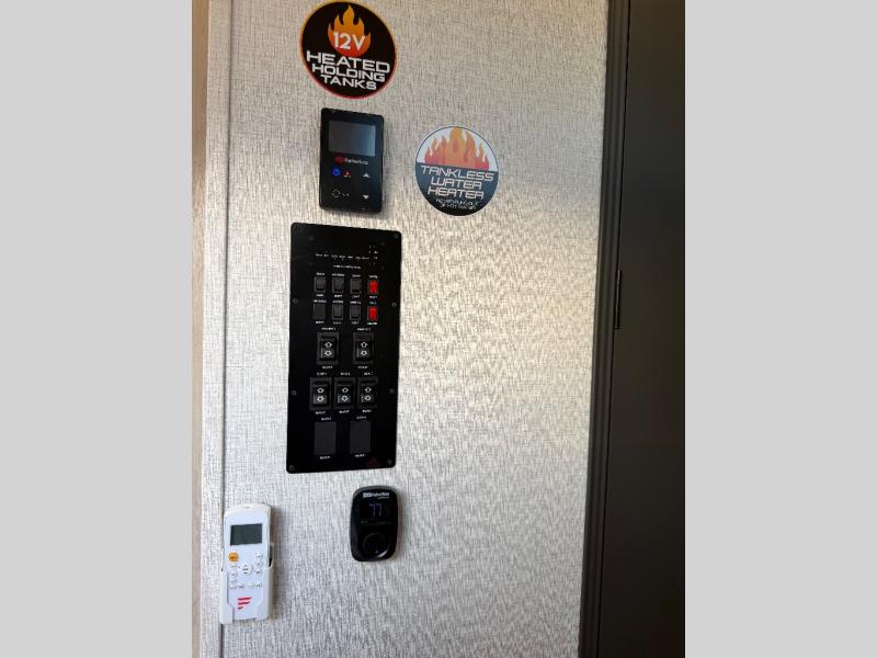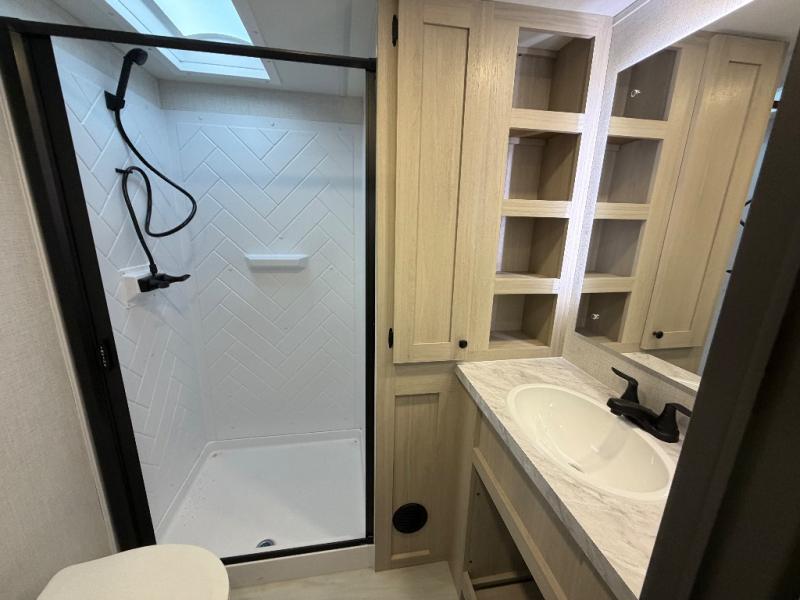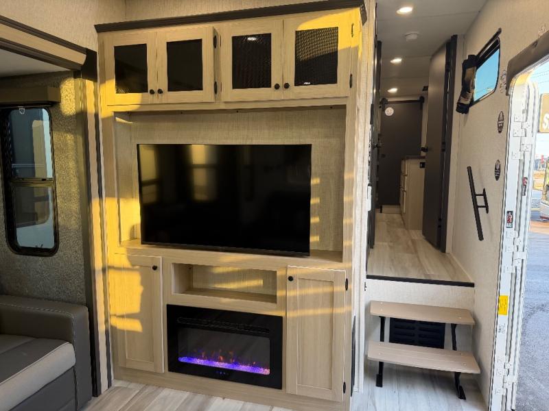With any Wildcat fifth wheel by Forest River you will enjoy affordable luxury at every turn. These models are constructed with residential fiberglass insulation in the roof and floor, a 4'x6' sectioned underbelly armor, and a vacuum bonded, welded aluminum structure for added strength and durability. You will also find seamless roto-cast holding tanks, an outdoor shower, and 4-point auto leveling for quick and easy setup. Each model includes a best-in-class, high-efficiency 35,000 BTU furnace, along with an electric fireplace with thermostat control and remote, plus a 60,000 BTU tankless water heater for added convenience. There are carpet-free living spaces, residential backsplash, motion lighting throughout, and many more comforts!
