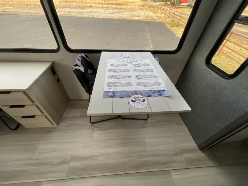 With any Wildcat fifth wheel by Forest River you will enjoy affordable luxury at every turn. These models are constructed with residential fiberglass insulation in the roof and floor, a 4'x6' sectioned underbelly armor, and a vacuum bonded, welded aluminum structure for added strength and durability. You will also find seamless roto-cast holding tanks, an outdoor shower, and 4-point auto leveling for quick and easy setup. Each model includes a best-in-class, high-efficiency 35,000 BTU furnace, along with an electric fireplace with thermostat control and remote, plus a 60,000 BTU tankless water heater for added convenience. There are carpet-free living spaces, residential backsplash, motion lighting throughout, and many more comforts!