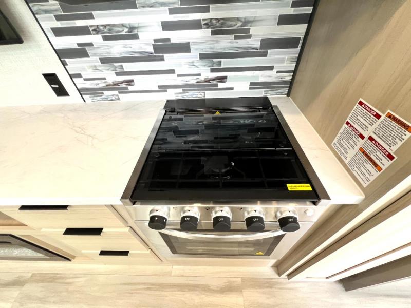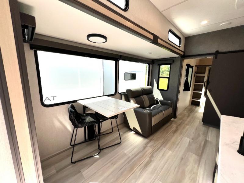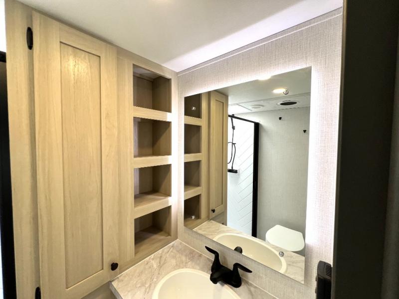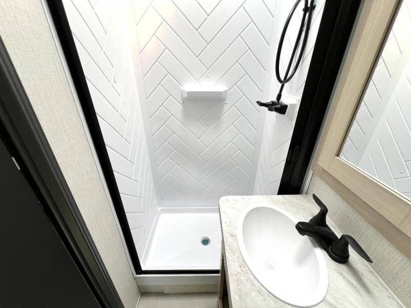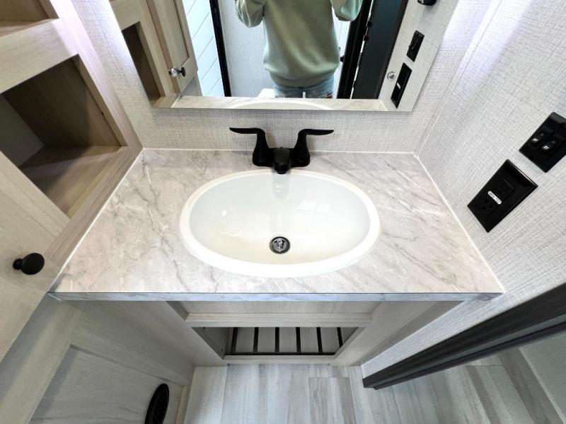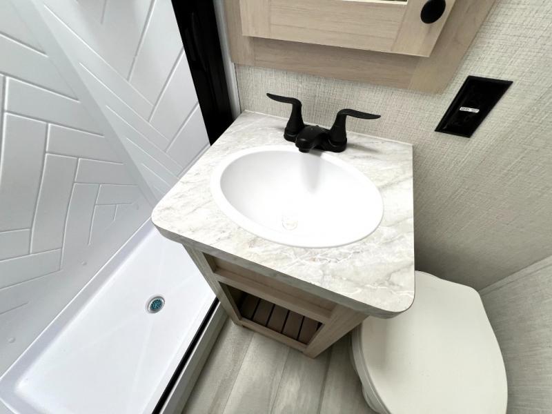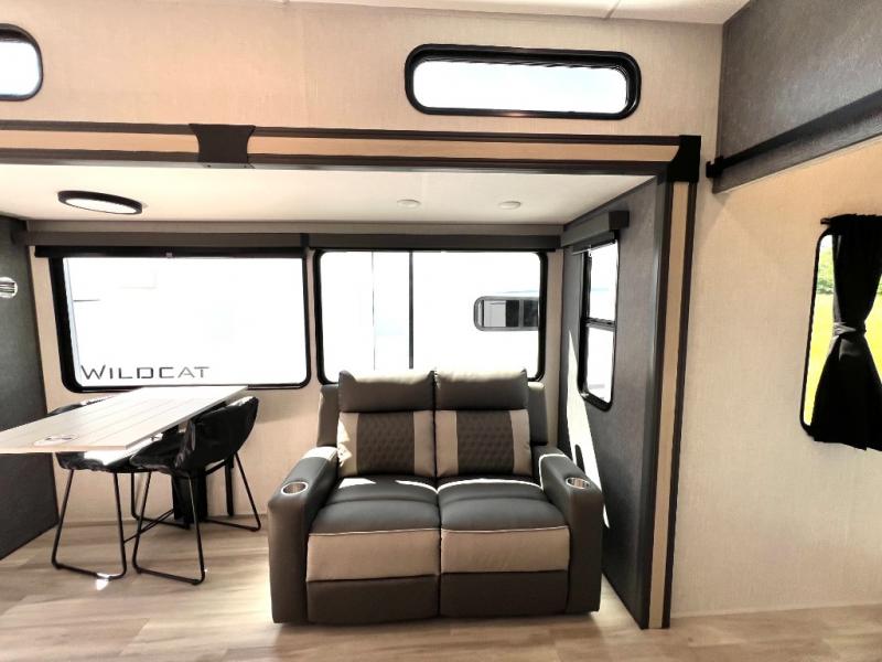 With any Wildcat fifth wheel by Forest River you will enjoy affordable luxury at every turn. These models are constructed with residential fiberglass insulation in the roof and floor, a 4'x6' sectioned underbelly armor, and a vacuum bonded, welded aluminum structure for added strength and durability. You will also find seamless roto-cast holding tanks, an outdoor shower, and 4-point auto leveling for quick and easy setup. Each model includes a best-in-class, high-efficiency 35,000 BTU furnace, along with an electric fireplace with thermostat control and remote, plus a 60,000 BTU tankless water heater for added convenience. There are carpet-free living spaces, residential backsplash, motion lighting throughout, and many more comforts!