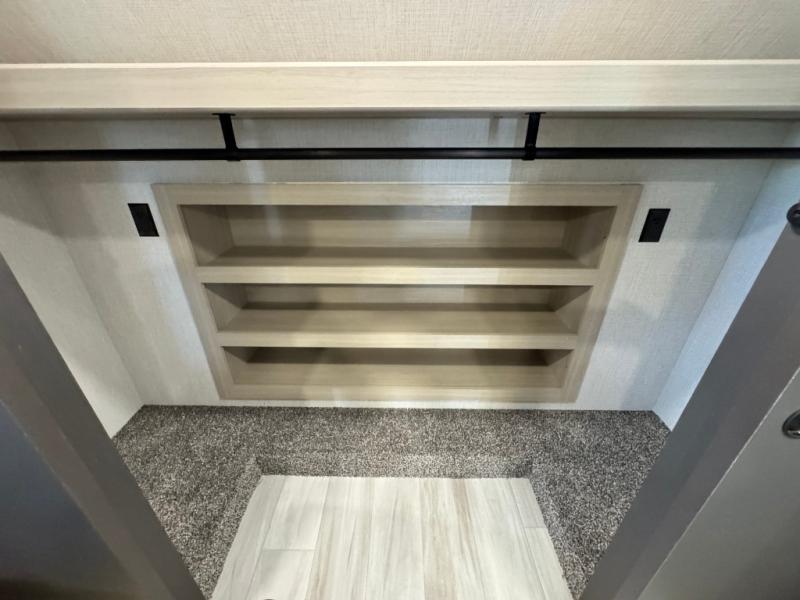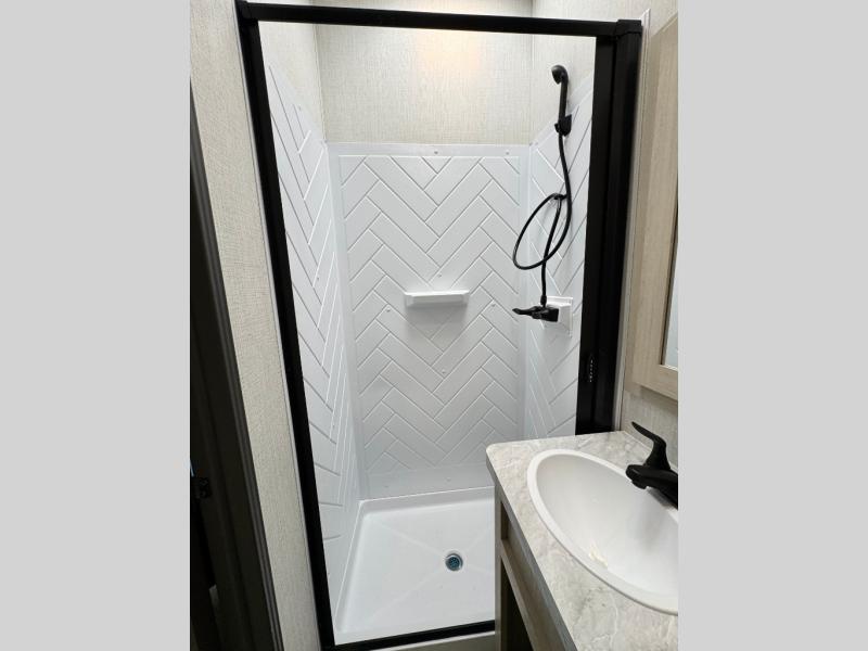 AUTO-LEVEL, OVEN RANGE, MICROWAVE, FRIDGE, BACKSPLASH, WATER TANK, TABLE & CHAIRS, ROLLER SHADES, AWNING(S), BAGGAGE DOORS, MOTION LIGHTING, 2" RECEIVER (MOST MODELS), KING/QUEEN SIZE BED(S), EASY CLEAN FLOORS, ENTRY DOOR & STEPS, TINTED WINDOWS, OUTDOOR SHOWER, LP QUICK CONNECT