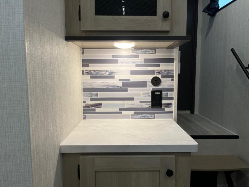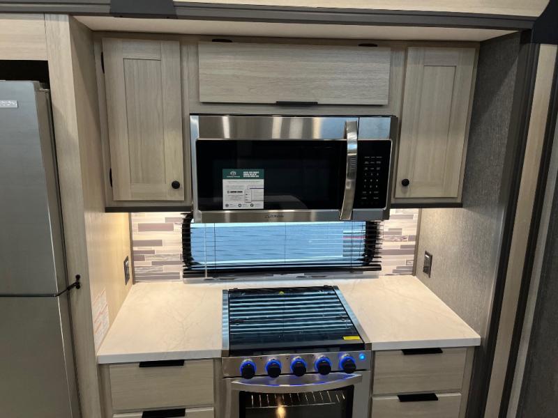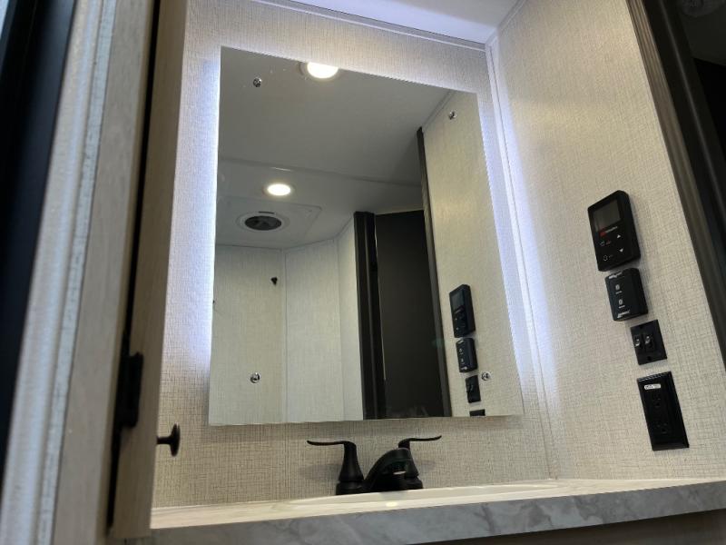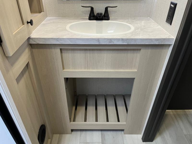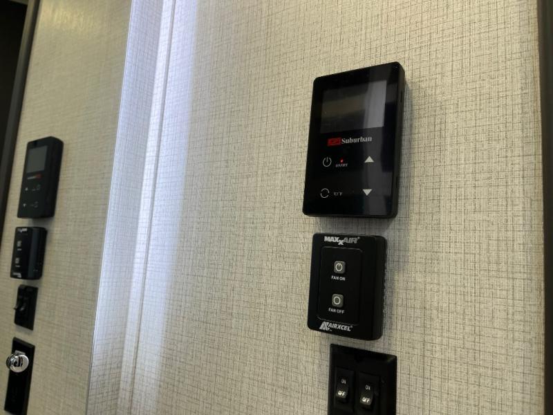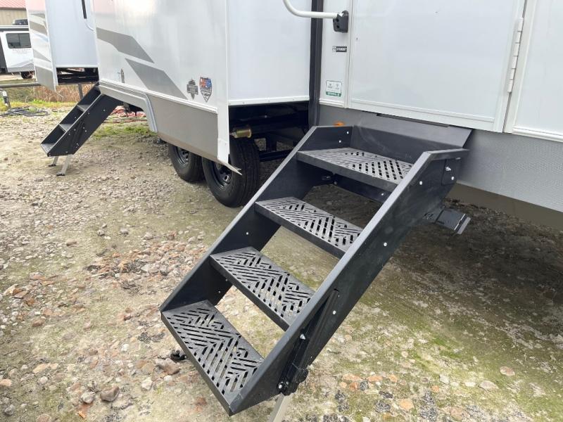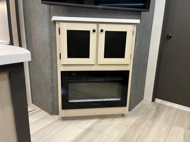 With any Wildcat fifth wheel by Forest River you will enjoy affordable luxury at every turn. These models are constructed with residential fiberglass insulation in the roof and floor, a 4'x6' sectioned underbelly armor, and a vacuum bonded, welded aluminum structure for added strength and durability. You will also find seamless roto-cast holding tanks, an outdoor shower, and 4-point auto leveling for quick and easy setup. Each model includes a best-in-class, high-efficiency 35,000 BTU furnace, along with an electric fireplace with thermostat control and remote, plus a 60,000 BTU tankless water heater for added convenience. There are carpet-free living spaces, residential backsplash, motion lighting throughout, and many more comforts!