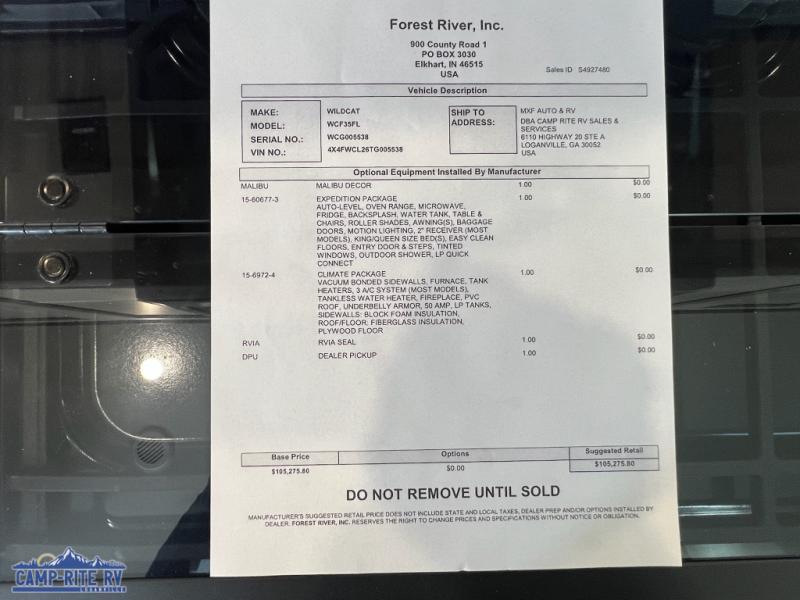 Forest River RV Wildcat fifth wheel 35FL highlights: