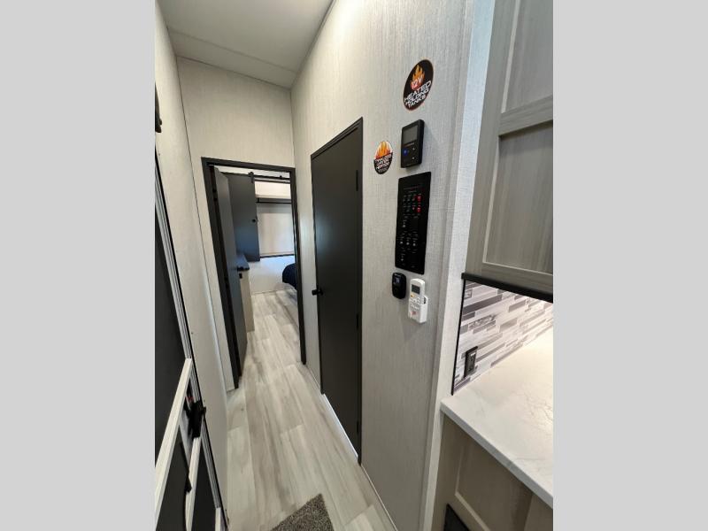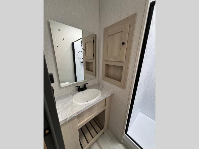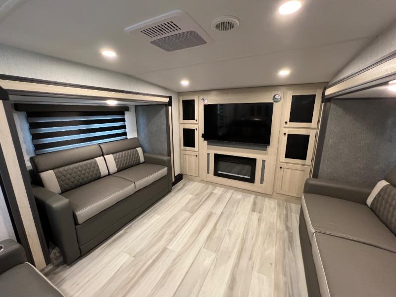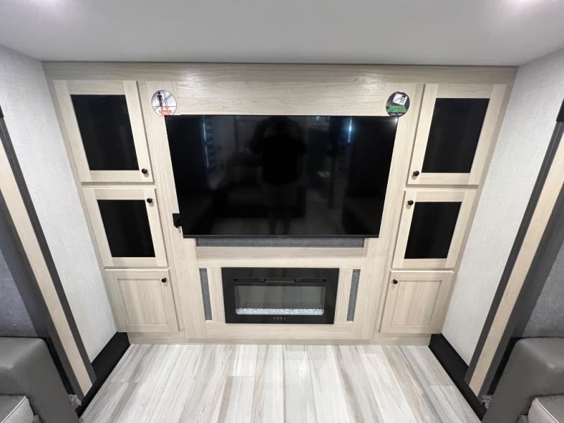 With any Wildcat fifth wheel by Forest River you will enjoy affordable luxury at every turn. These models are constructed with residential fiberglass insulation in the roof and floor, a 4'x6' sectioned underbelly armor, and a vacuum bonded, welded aluminum structure for added strength and durability. You will also find seamless roto-cast holding tanks, an outdoor shower, and 4-point auto leveling for quick and easy setup. Each model includes a best-in-class, high-efficiency 35,000 BTU furnace, along with an electric fireplace with thermostat control and remote, plus a 60,000 BTU tankless water heater for added convenience. There are carpet-free living spaces, residential backsplash, motion lighting throughout, and many more comforts!