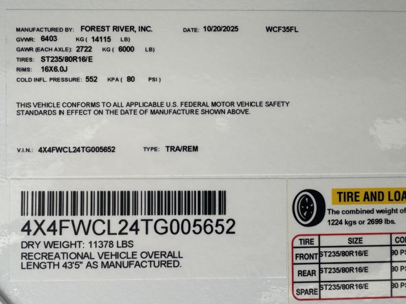 New 2026 Forest River RV Wildcat 35FL Fifth Wheel