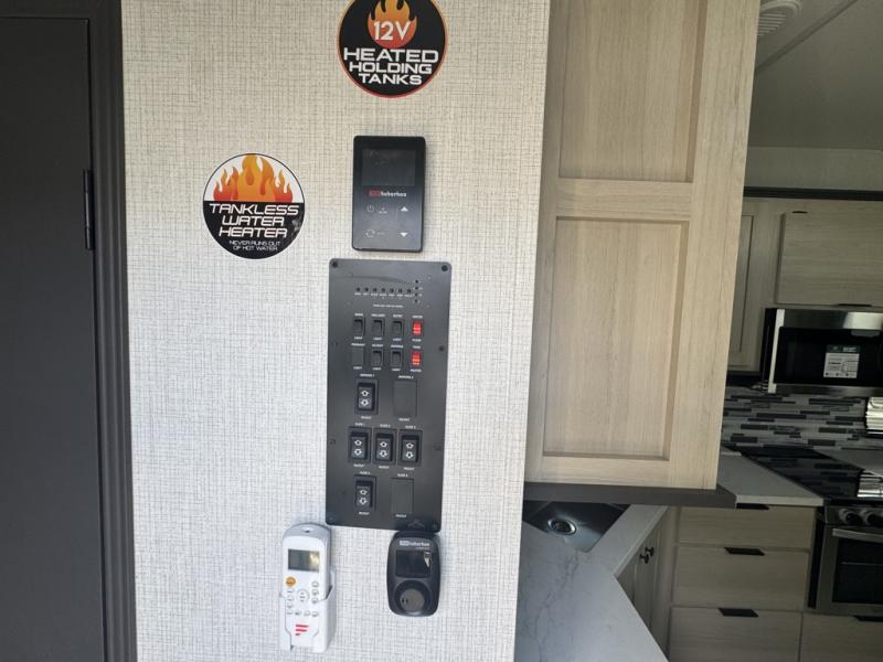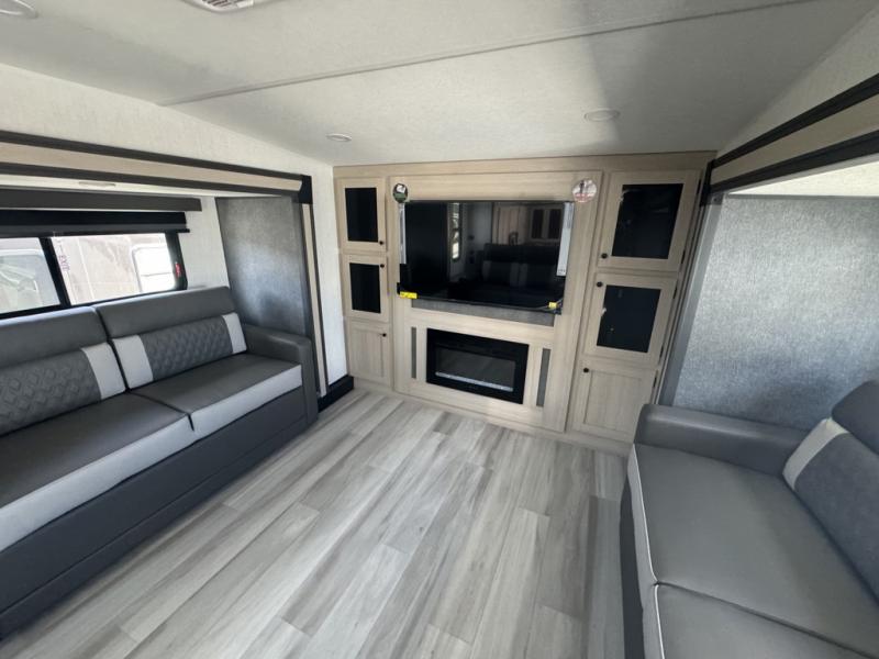 With any Wildcat fifth wheel by Forest River you will enjoy affordable luxury at every turn. These models are constructed with residential fiberglass insulation in the roof and floor, a 4'x6' sectioned underbelly armor, and a vacuum bonded, welded aluminum structure for added strength and durability. You will also find seamless roto-cast holding tanks, an outdoor shower, and 4-point auto leveling for quick and easy setup. Each model includes a best-in-class, high-efficiency 35,000 BTU furnace, along with an electric fireplace with thermostat control and remote, plus a 60,000 BTU tankless water heater for added convenience. There are carpet-free living spaces, residential backsplash, motion lighting throughout, and many more comforts!