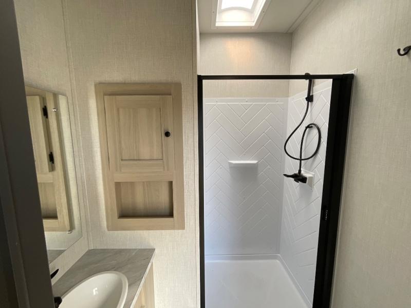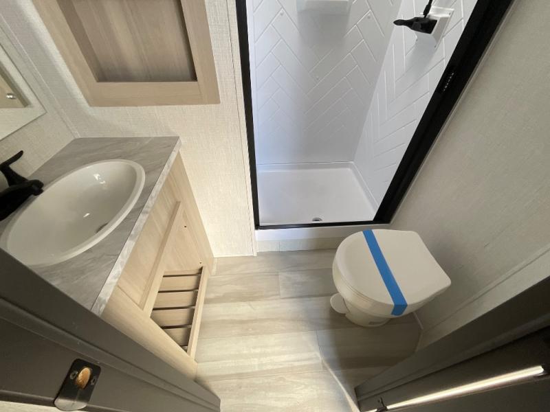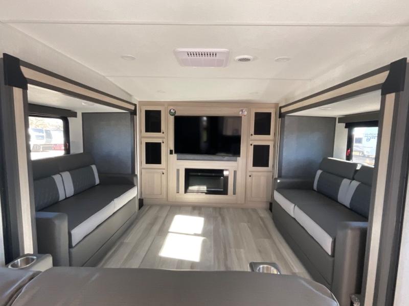 With any Wildcat fifth wheel by Forest River you will enjoy affordable luxury at every turn. These models are constructed with residential fiberglass insulation in the roof and floor, a 4'x6' sectioned underbelly armor, and a vacuum bonded, welded aluminum structure for added strength and durability. You will also find seamless roto-cast holding tanks, an outdoor shower, and 4-point auto leveling for quick and easy setup. Each model includes a best-in-class, high-efficiency 35,000 BTU furnace, along with an electric fireplace with thermostat control and remote, plus a 60,000 BTU tankless water heater for added convenience. There are carpet-free living spaces, residential backsplash, motion lighting throughout, and many more comforts!