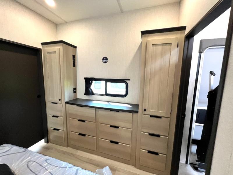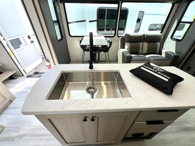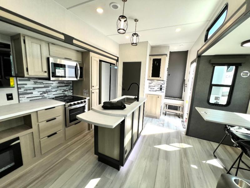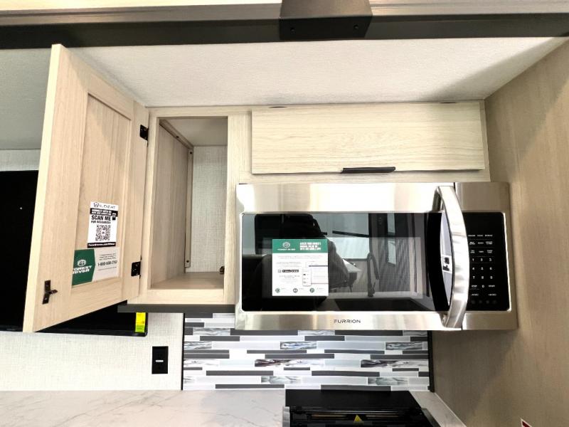 With any Wildcat fifth wheel by Forest River you will enjoy affordable luxury at every turn. These models are constructed with residential fiberglass insulation in the roof and floor, a sectioned ABS plastic underbelly armor, and a vacuum bonded, welded aluminum structure for added strength and durability. You will also find seamless roto-cast holding tanks, an outdoor shower, and 4-point auto leveling for quick and easy setup. Each model includes a best-in-class, high-efficiency 35,000 BTU furnace, along with a 18,000 BTU ducted A/C, with second and third A/C prep, plus an on-demand tankless water heater for added convenience. There are carpet-free living spaces, residential backsplash, motion lighting throughout, and many more comforts!