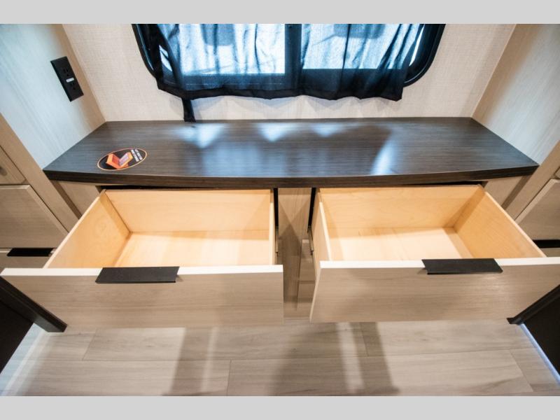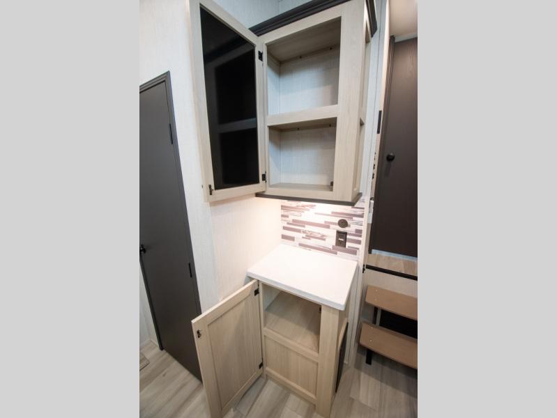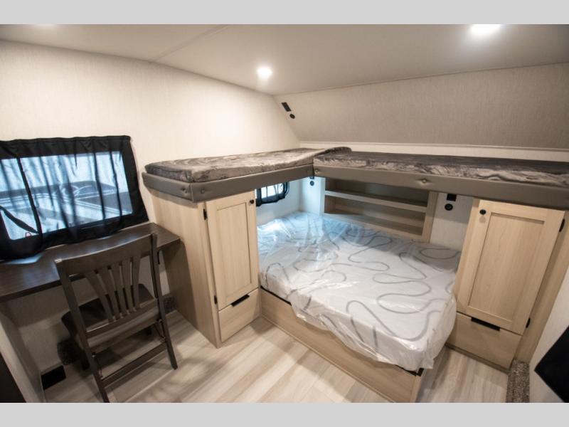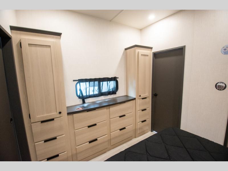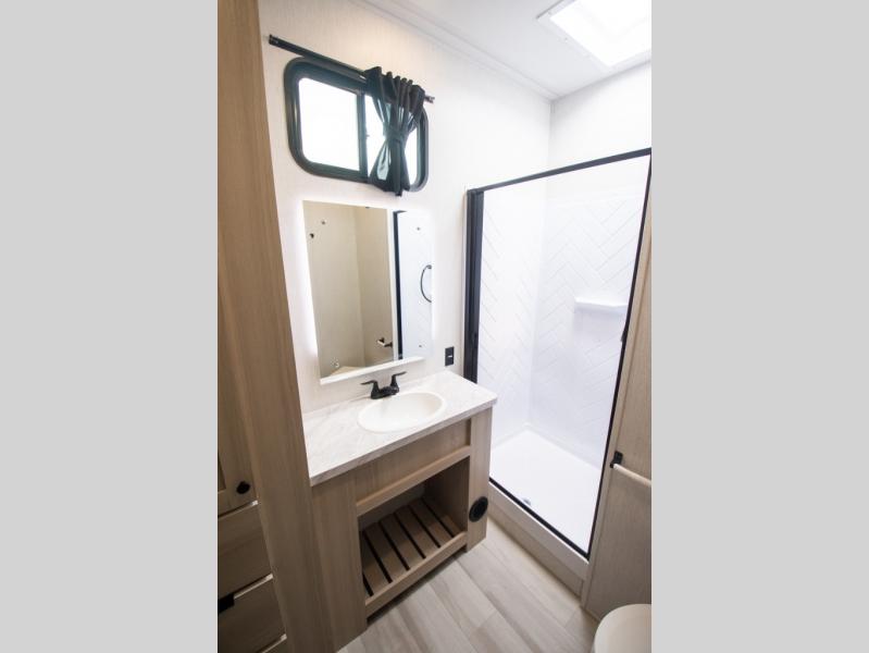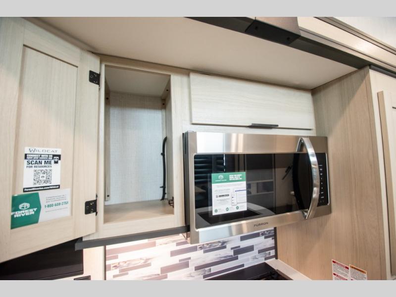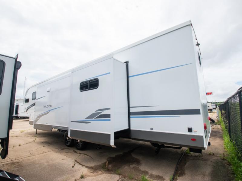 With any Wildcat fifth wheel by Forest River you will enjoy affordable luxury at every turn. These models are constructed with residential fiberglass insulation in the roof and floor, a sectioned ABS plastic underbelly armor, and a vacuum bonded, welded aluminum structure for added strength and durability. You will also find seamless roto-cast holding tanks, an outdoor shower, and 4-point auto leveling for quick and easy setup. Each model includes a best-in-class, high-efficiency 35,000 BTU furnace, along with a 18,000 BTU ducted A/C, with second and third A/C prep, plus an on-demand tankless water heater for added convenience. There are carpet-free living spaces, residential backsplash, motion lighting throughout, and many more comforts!