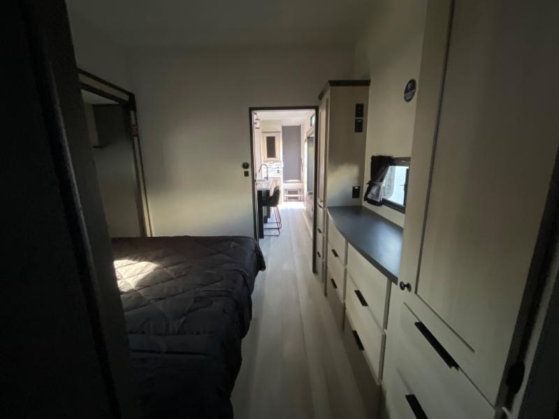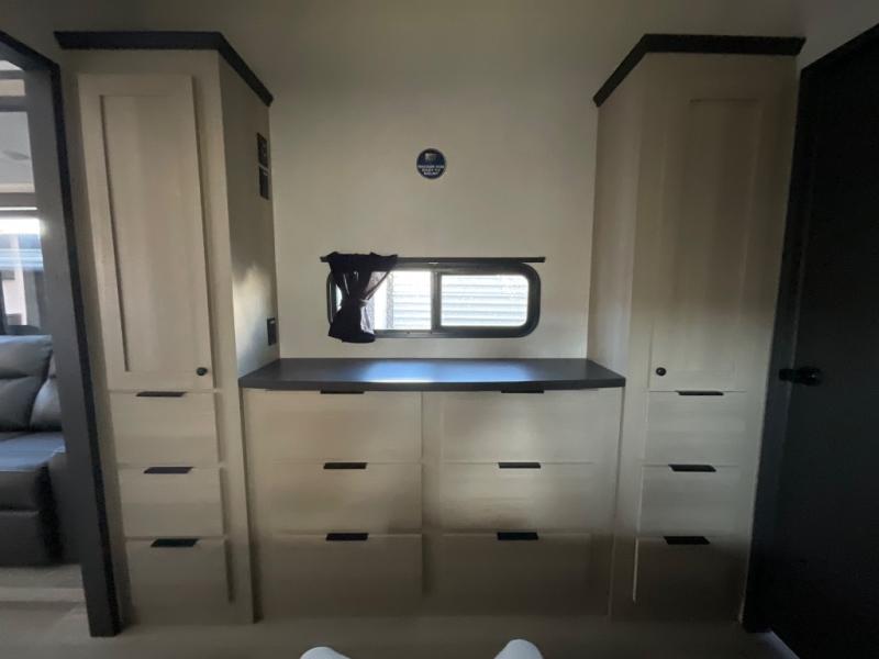 With any Wildcat fifth wheel by Forest River you will enjoy affordable luxury at every turn. These models are constructed with residential fiberglass insulation in the roof and floor, a 4'x6' sectioned underbelly armor, and a vacuum bonded, welded aluminum structure for added strength and durability. You will also find seamless roto-cast holding tanks, an outdoor shower, and 4-point auto leveling for quick and easy setup. Each model includes a best-in-class, high-efficiency 35,000 BTU furnace, along with an electric fireplace with thermostat control and remote, plus a 60,000 BTU tankless water heater for added convenience. There are carpet-free living spaces, residential backsplash, motion lighting throughout, and many more comforts!