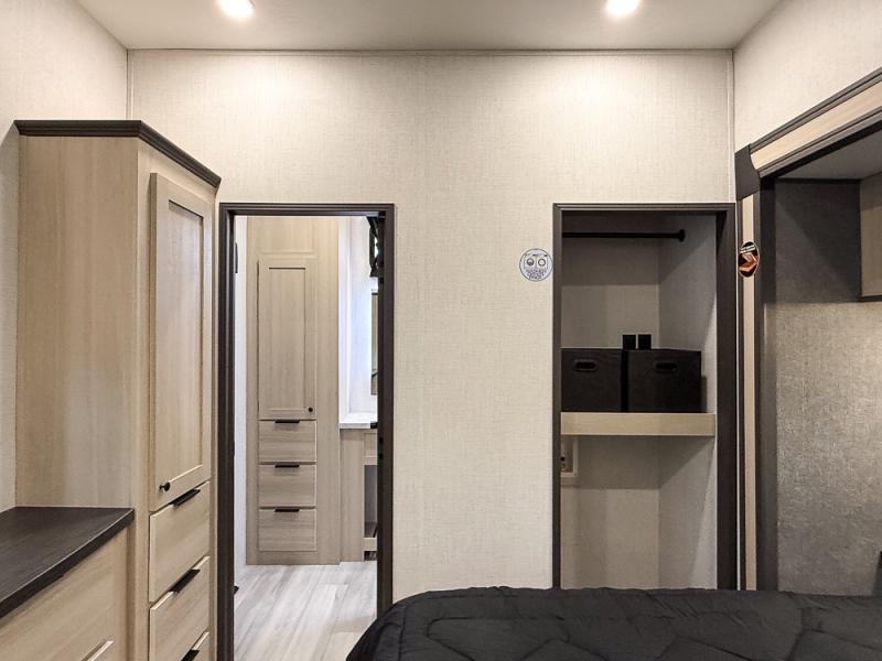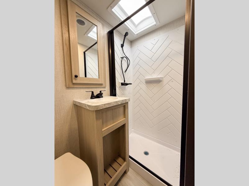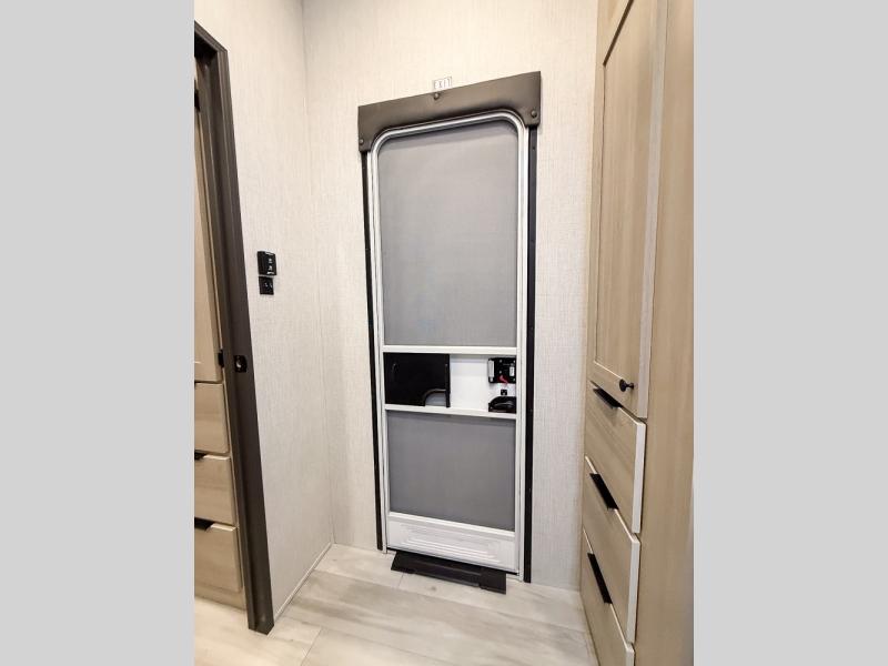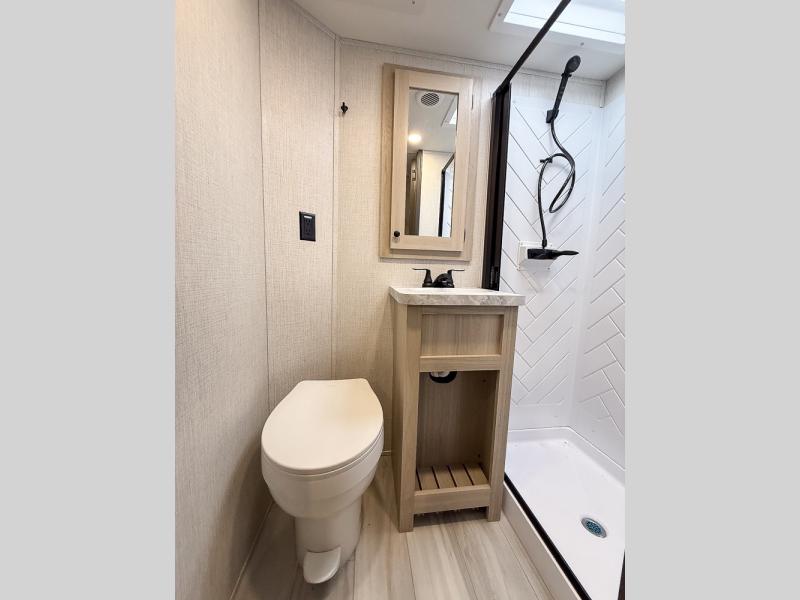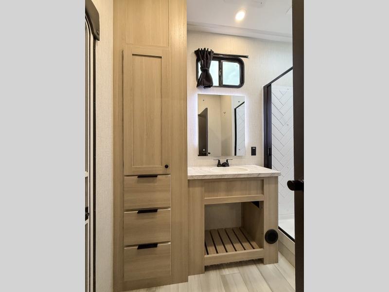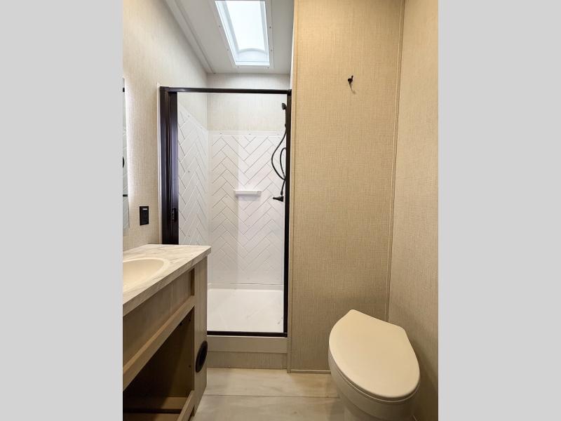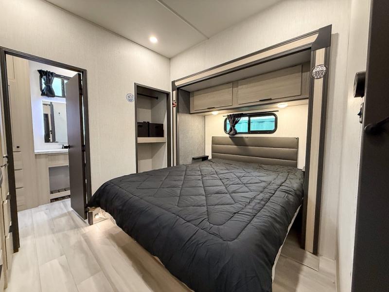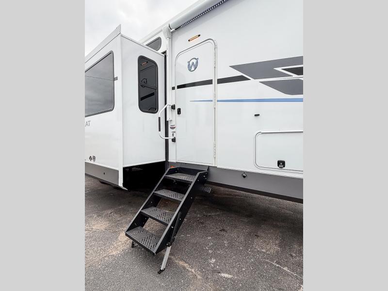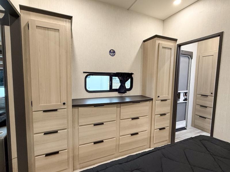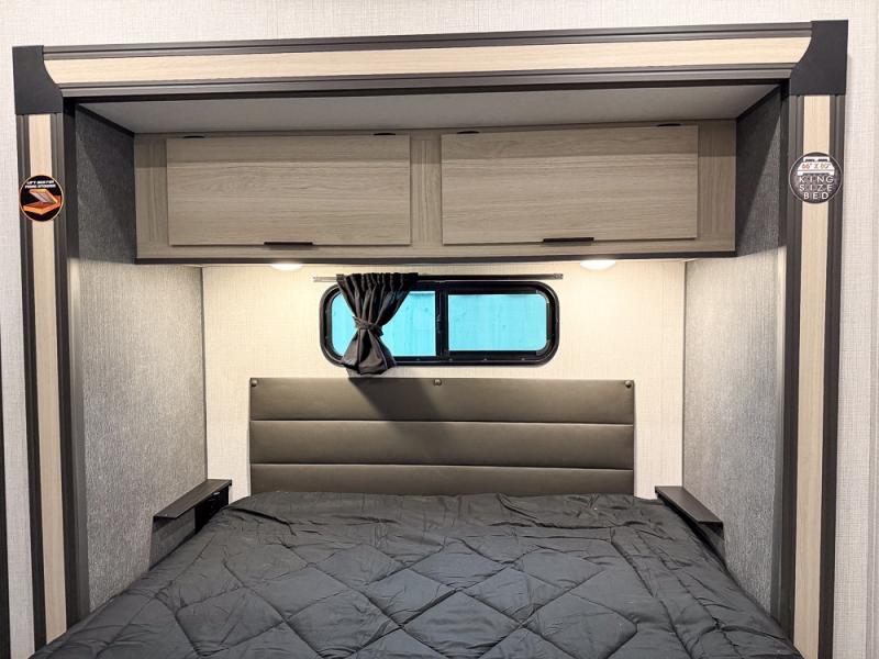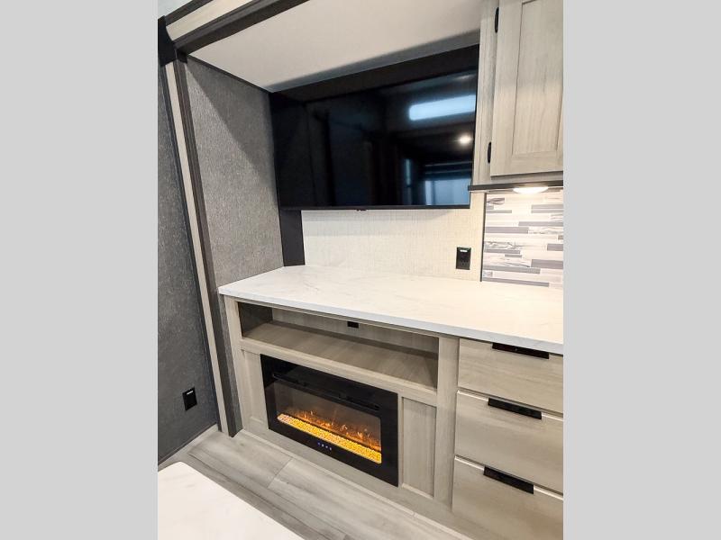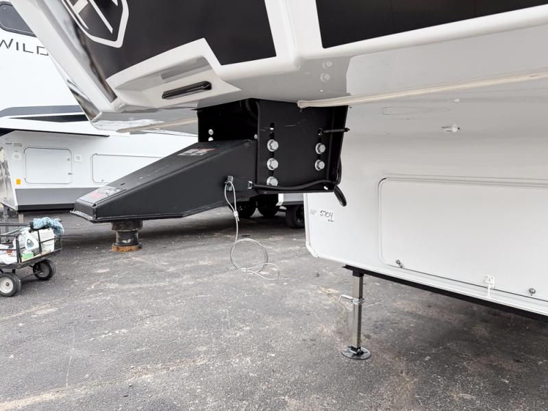 With any Wildcat fifth wheel by Forest River you will enjoy affordable luxury at every turn. These models are constructed with residential fiberglass insulation in the roof and floor, a 4'x6' sectioned underbelly armor, and a vacuum bonded, welded aluminum structure for added strength and durability. You will also find seamless roto-cast holding tanks, an outdoor shower, and 4-point auto leveling for quick and easy setup. Each model includes a best-in-class, high-efficiency 35,000 BTU furnace, along with an electric fireplace with thermostat control and remote, plus a 60,000 BTU tankless water heater for added convenience. There are carpet-free living spaces, residential backsplash, motion lighting throughout, and many more comforts!
