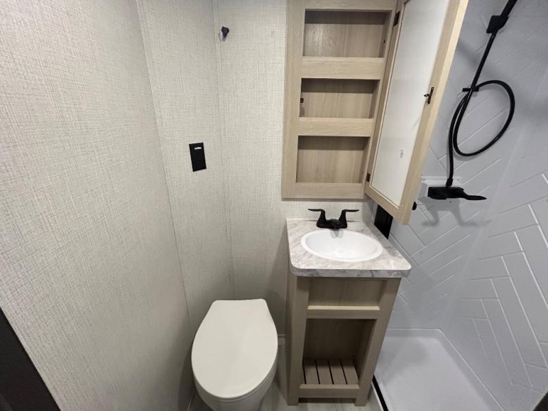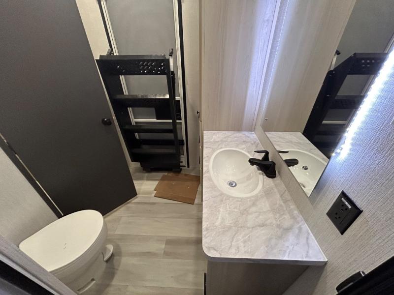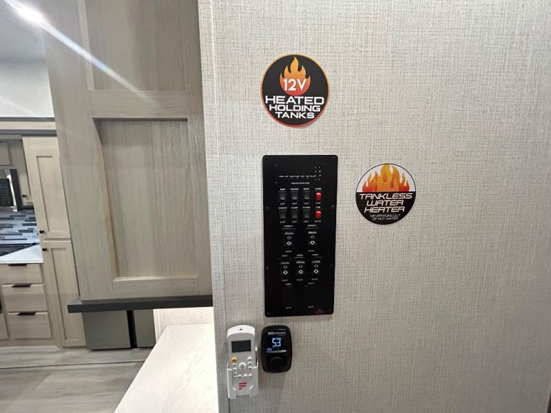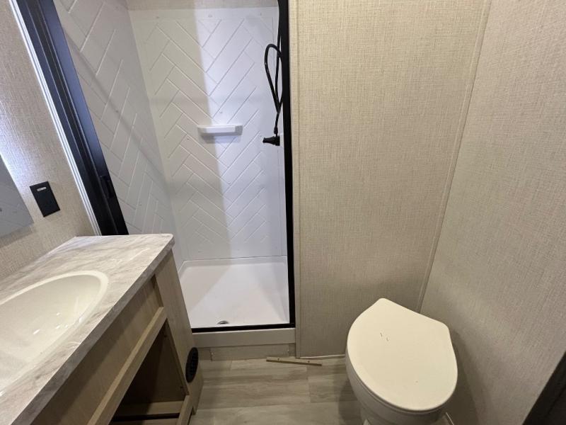 With any Wildcat fifth wheel by Forest River you will enjoy affordable luxury at every turn. These models are constructed with residential fiberglass insulation in the roof and floor, a 4'x6' sectioned underbelly armor, and a vacuum bonded, welded aluminum structure for added strength and durability. You will also find seamless roto-cast holding tanks, an outdoor shower, and 4-point auto leveling for quick and easy setup. Each model includes a best-in-class, high-efficiency 35,000 BTU furnace, along with an electric fireplace with thermostat control and remote, plus a 60,000 BTU tankless water heater for added convenience. There are carpet-free living spaces, residential backsplash, motion lighting throughout, and many more comforts!
