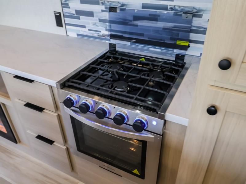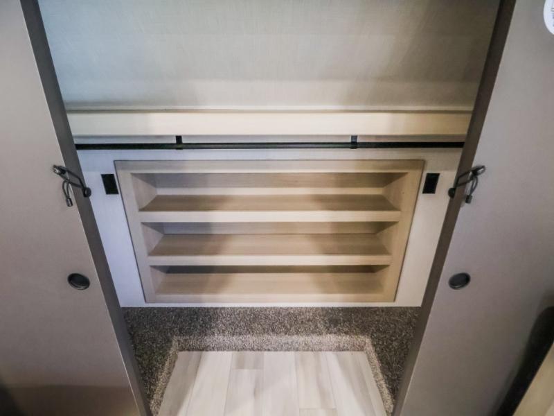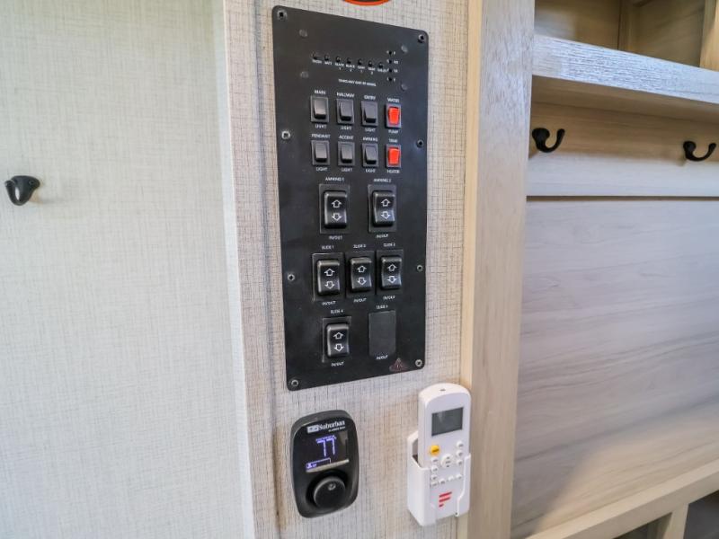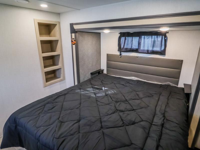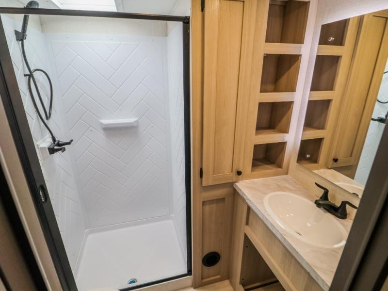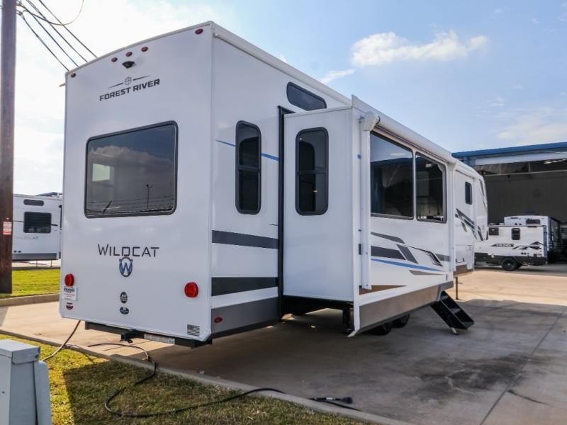 With any Wildcat fifth wheel by Forest River you will enjoy affordable luxury at every turn. These models are constructed with residential fiberglass insulation in the roof and floor, a 4'x6' sectioned underbelly armor, and a vacuum bonded, welded aluminum structure for added strength and durability. You will also find seamless roto-cast holding tanks, an outdoor shower, and 4-point auto leveling for quick and easy setup. Each model includes a best-in-class, high-efficiency 35,000 BTU furnace, along with an electric fireplace with thermostat control and remote, plus a 60,000 BTU tankless water heater for added convenience. There are carpet-free living spaces, residential backsplash, motion lighting throughout, and many more comforts!