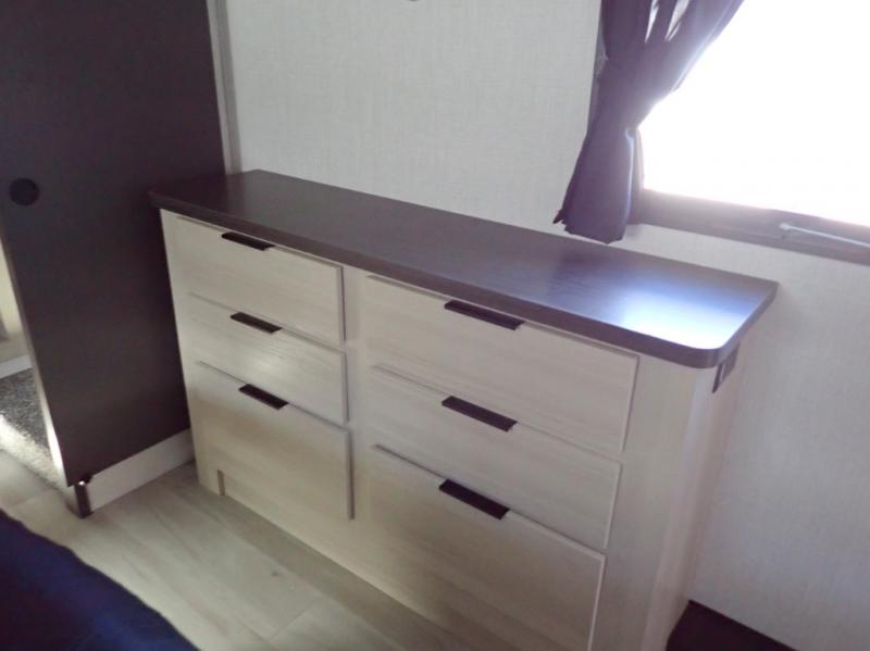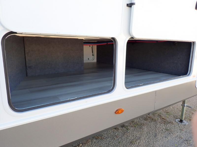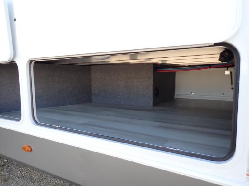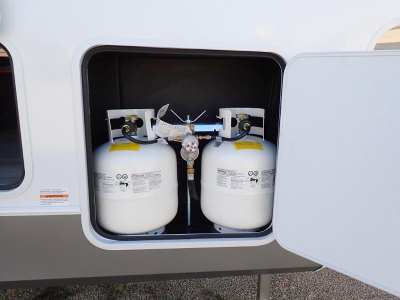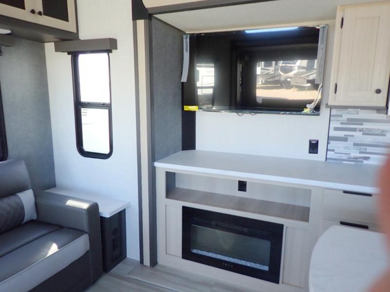 With any Wildcat fifth wheel by Forest River you will enjoy affordable luxury at every turn. These models are constructed with residential fiberglass insulation in the roof and floor, a 4'x6' sectioned underbelly armor, and a vacuum bonded, welded aluminum structure for added strength and durability. You will also find seamless roto-cast holding tanks, an outdoor shower, and 4-point auto leveling for quick and easy setup. Each model includes a best-in-class, high-efficiency 35,000 BTU furnace, along with an electric fireplace with thermostat control and remote, plus a 60,000 BTU tankless water heater for added convenience. There are carpet-free living spaces, residential backsplash, motion lighting throughout, and many more comforts!