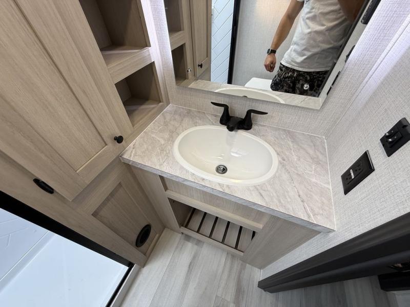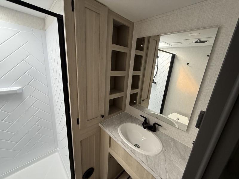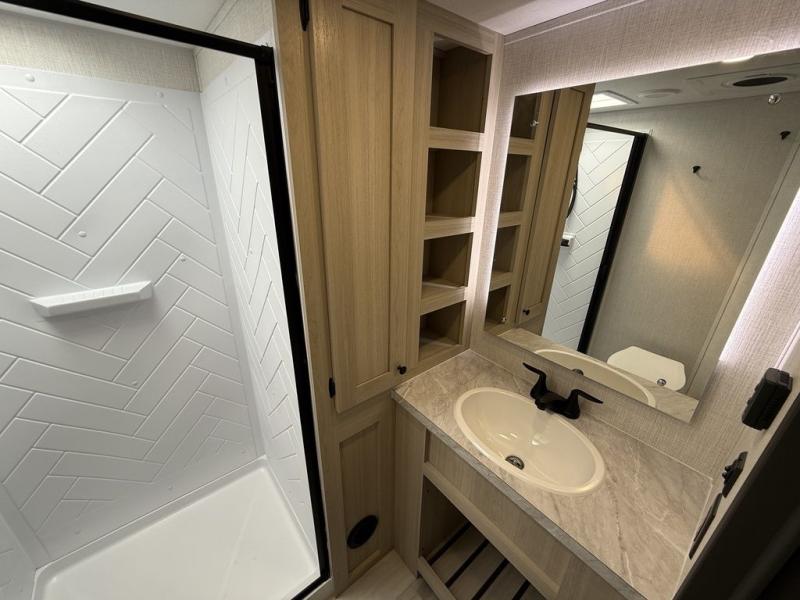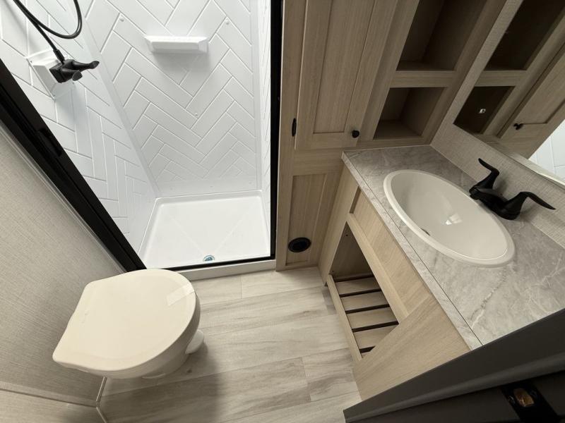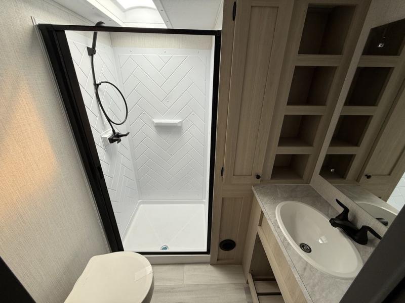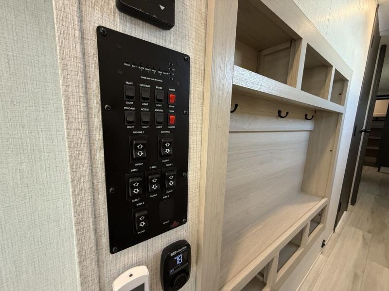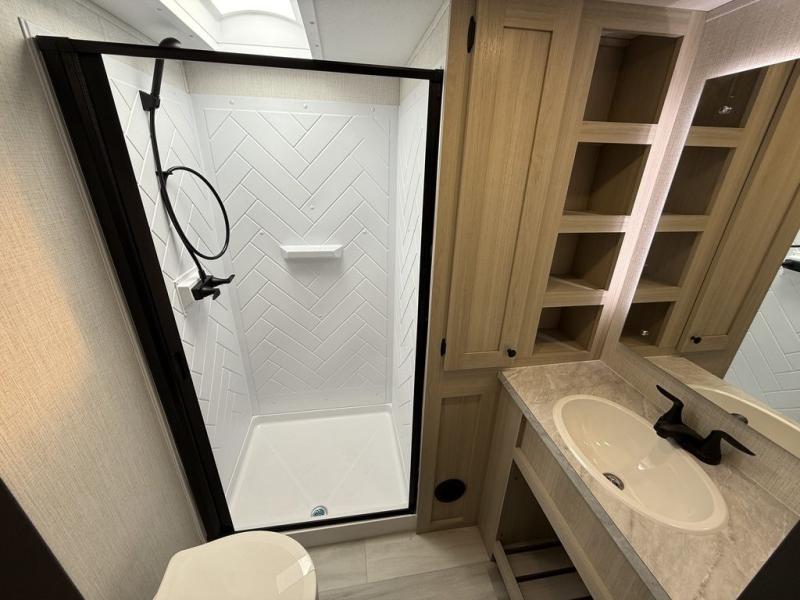 With any Wildcat fifth wheel by Forest River you will enjoy affordable luxury at every turn. These models are constructed with residential fiberglass insulation in the roof and floor, a 4'x6' sectioned underbelly armor, and a vacuum bonded, welded aluminum structure for added strength and durability. You will also find seamless roto-cast holding tanks, an outdoor shower, and 4-point auto leveling for quick and easy setup. Each model includes a best-in-class, high-efficiency 35,000 BTU furnace, along with an electric fireplace with thermostat control and remote, plus a 60,000 BTU tankless water heater for added convenience. There are carpet-free living spaces, residential backsplash, motion lighting throughout, and many more comforts!