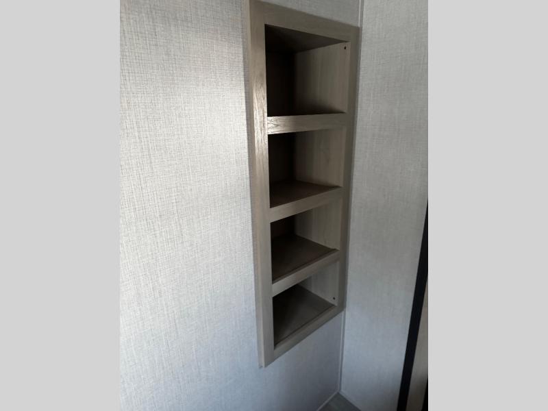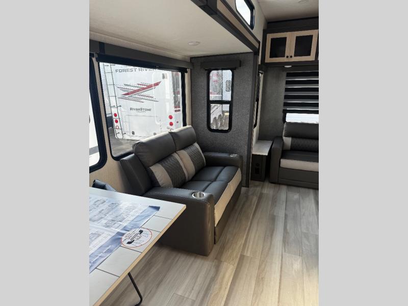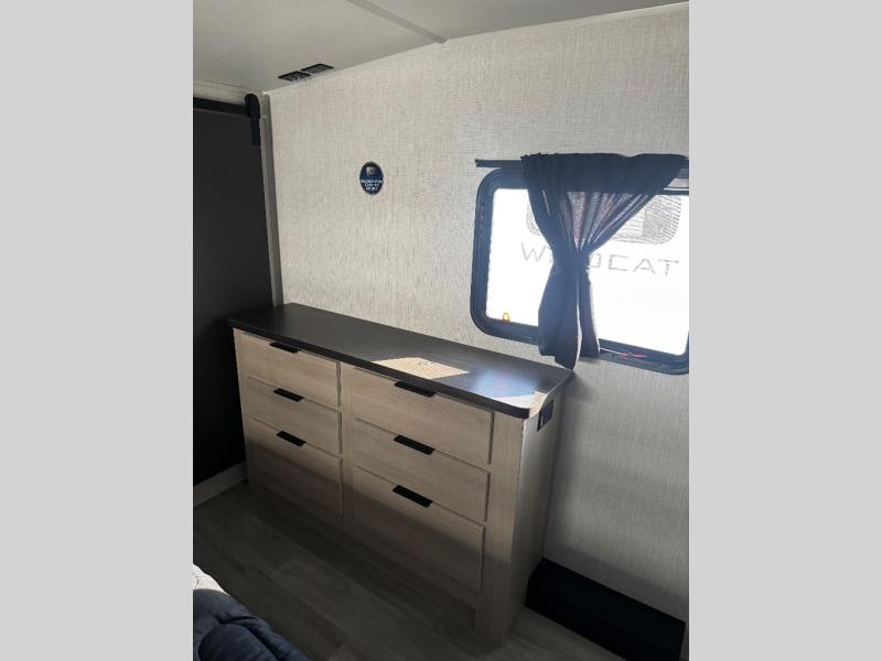 With any Wildcat fifth wheel by Forest River you will enjoy affordable luxury at every turn. These models are constructed with residential fiberglass insulation in the roof and floor, a 4'x6' sectioned underbelly armor, and a vacuum bonded, welded aluminum structure for added strength and durability. You will also find seamless roto-cast holding tanks, an outdoor shower, and 4-point auto leveling for quick and easy setup. Each model includes a best-in-class, high-efficiency 35,000 BTU furnace, along with an electric fireplace with thermostat control and remote, plus a 60,000 BTU tankless water heater for added convenience. There are carpet-free living spaces, residential backsplash, motion lighting throughout, and many more comforts!