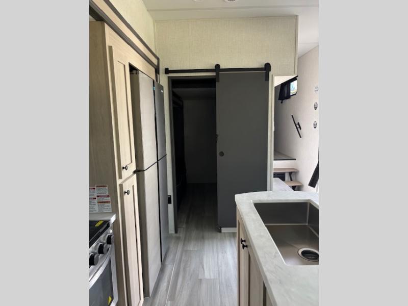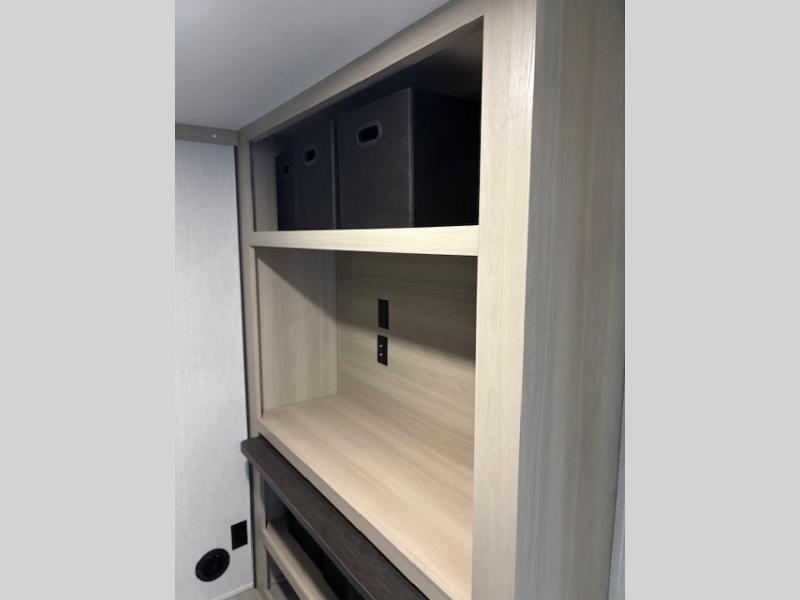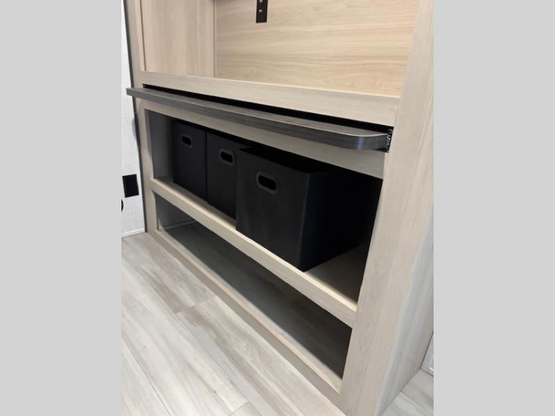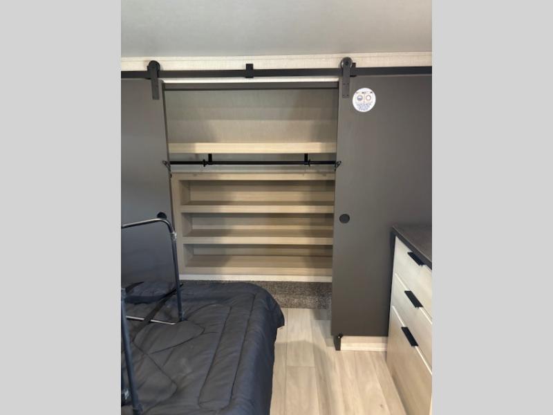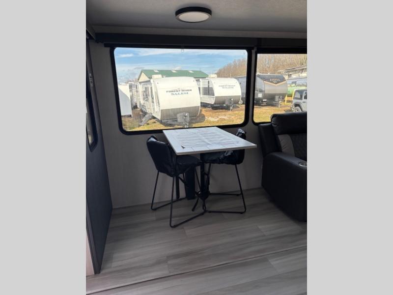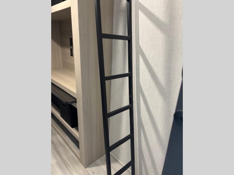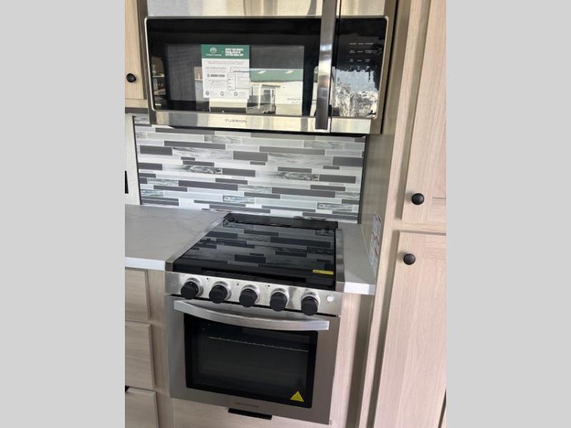 Wow! You won't believe the features found in this luxury fifth wheel that can sleep up to nine each night! Your guests or the kids will absolutely love the middle bunkroom with a bunk, hide-a-bed sofa and a loft above for even more sleeping or storage space. There is also a desk here, which will allow you to utilize this space as an office as well! You'll have your own space in the front private bedroom on the king bed slide out, and there is a walk-in wardrobe to keep your clothes tidy. There is even washer and dryer prep for the option to keep those clothes clean! The chef of your group will have everything they need to prepare meals, including a 21" 2-in-1 oven range, an over-the-range microwave, a 16 cu. ft. 12V refrigerator, plus a kitchen island for more counter space. In the evenings, your crew can get cozy on the rear hide a bed sofa and theater seats across from the entertainment center and fireplace, or you might just play a game at the hi-top table and chairs!