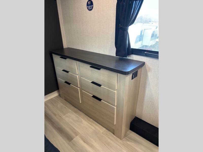 With any Wildcat fifth wheel by Forest River you will enjoy affordable luxury at every turn. These models are constructed with residential fiberglass insulation in the roof and floor, a 4'x6' sectioned underbelly armor, and a vacuum bonded, welded aluminum structure for added strength and durability. You will also find seamless roto-cast holding tanks, an outdoor shower, and 4-point auto leveling for quick and easy setup. Each model includes a best-in-class, high-efficiency 35,000 BTU furnace, along with an electric fireplace with thermostat control and remote, plus a 60,000 BTU tankless water heater for added convenience. There are carpet-free living spaces, residential backsplash, motion lighting throughout, and many more comforts!