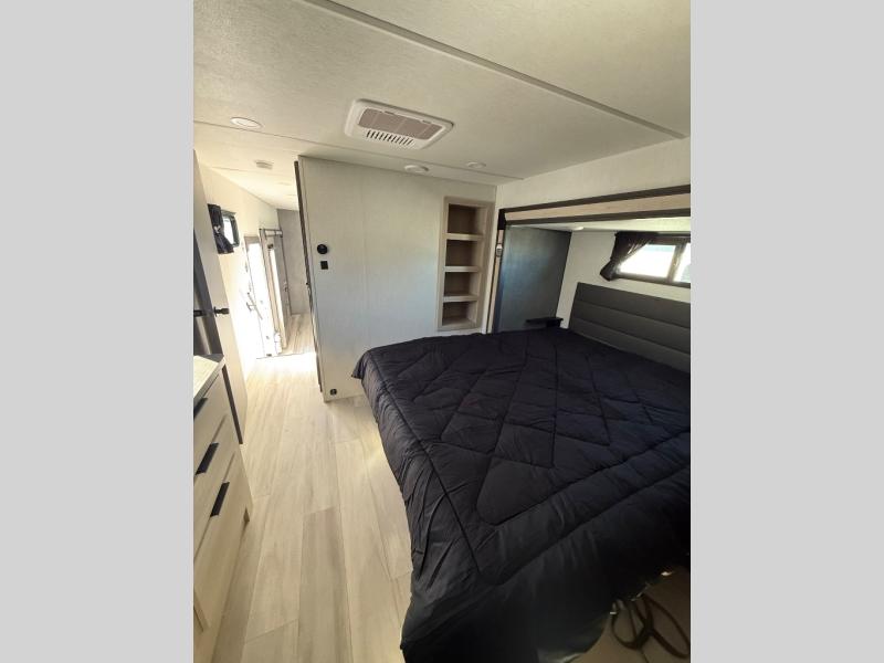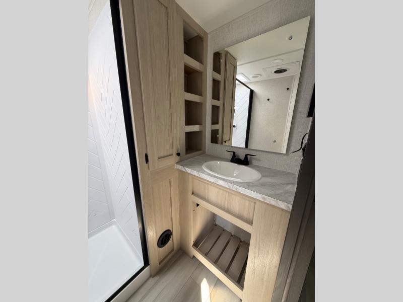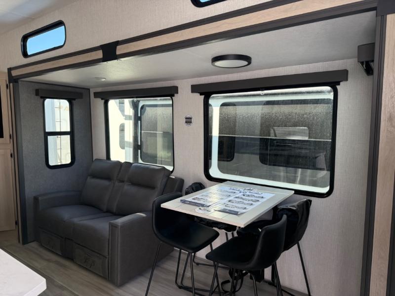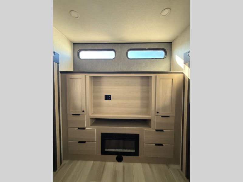 With any Wildcat fifth wheel by Forest River you will enjoy affordable luxury at every turn. These models are constructed with residential fiberglass insulation in the roof and floor, a 4'x6' sectioned underbelly armor, and a vacuum bonded, welded aluminum structure for added strength and durability. You will also find seamless roto-cast holding tanks, an outdoor shower, and 4-point auto leveling for quick and easy setup. Each model includes a best-in-class, high-efficiency 35,000 BTU furnace, along with an electric fireplace with thermostat control and remote, plus a 60,000 BTU tankless water heater for added convenience. There are carpet-free living spaces, residential backsplash, motion lighting throughout, and many more comforts!