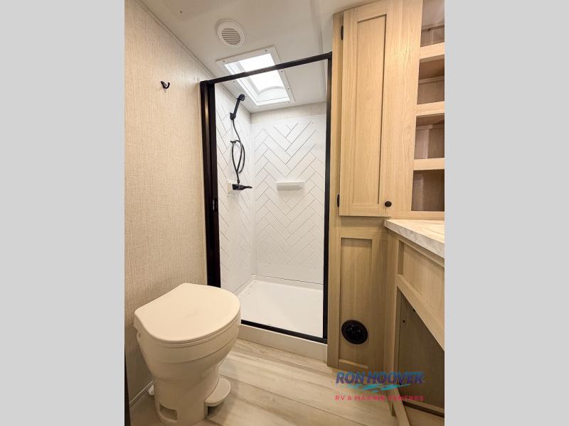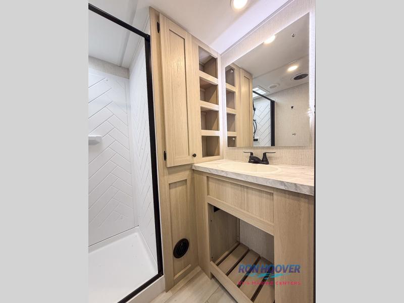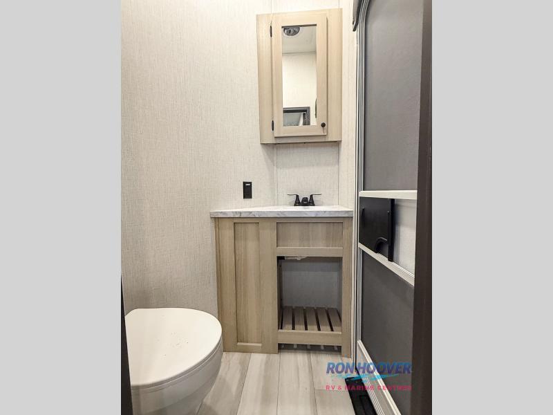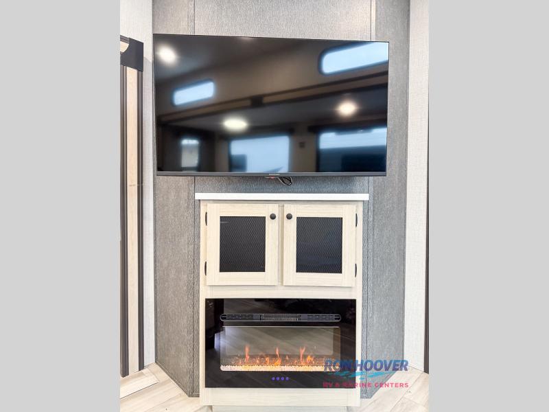 With any Wildcat fifth wheel by Forest River you will enjoy affordable luxury at every turn. These models are constructed with residential fiberglass insulation in the roof and floor, a 4'x6' sectioned underbelly armor, and a vacuum bonded, welded aluminum structure for added strength and durability. You will also find seamless roto-cast holding tanks, an outdoor shower, and 4-point auto leveling for quick and easy setup. Each model includes a best-in-class, high-efficiency 35,000 BTU furnace, along with an electric fireplace with thermostat control and remote, plus a 60,000 BTU tankless water heater for added convenience. There are carpet-free living spaces, residential backsplash, motion lighting throughout, and many more comforts!