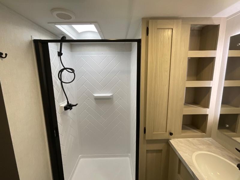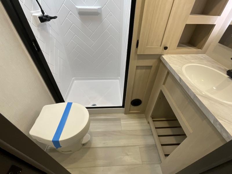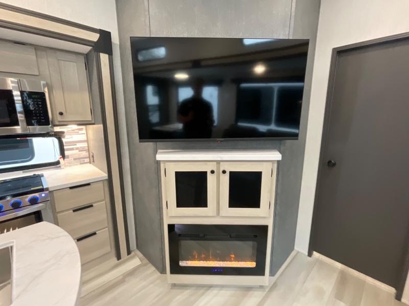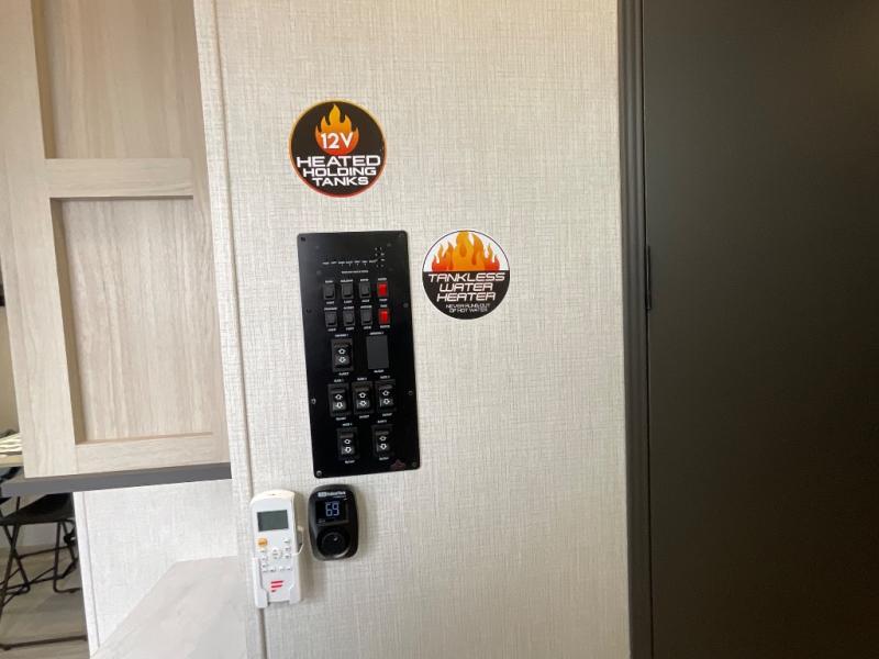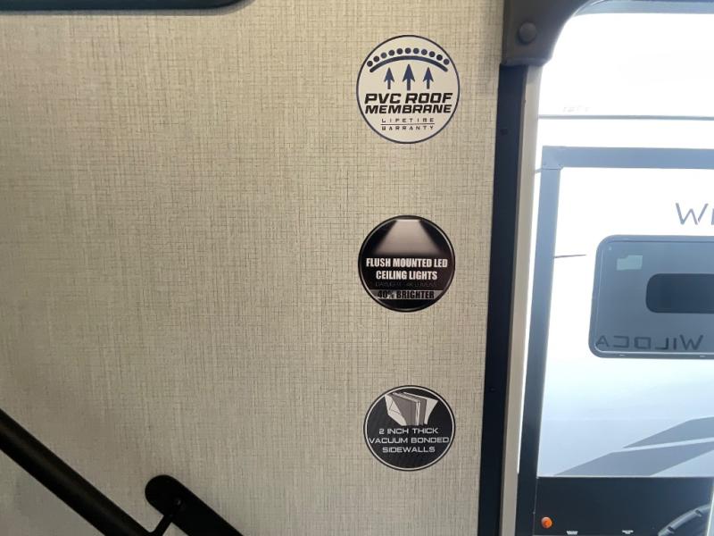 With any Wildcat fifth wheel by Forest River you will enjoy affordable luxury at every turn. These models are constructed with residential fiberglass insulation in the roof and floor, a 4'x6' sectioned underbelly armor, and a vacuum bonded, welded aluminum structure for added strength and durability. You will also find seamless roto-cast holding tanks, an outdoor shower, and 4-point auto leveling for quick and easy setup. Each model includes a best-in-class, high-efficiency 35,000 BTU furnace, along with an electric fireplace with thermostat control and remote, plus a 60,000 BTU tankless water heater for added convenience. There are carpet-free living spaces, residential backsplash, motion lighting throughout, and many more comforts!