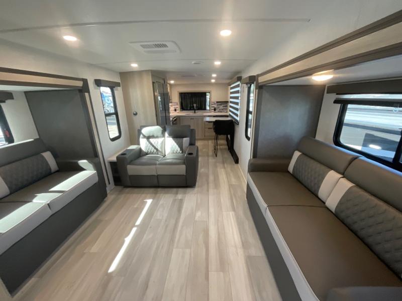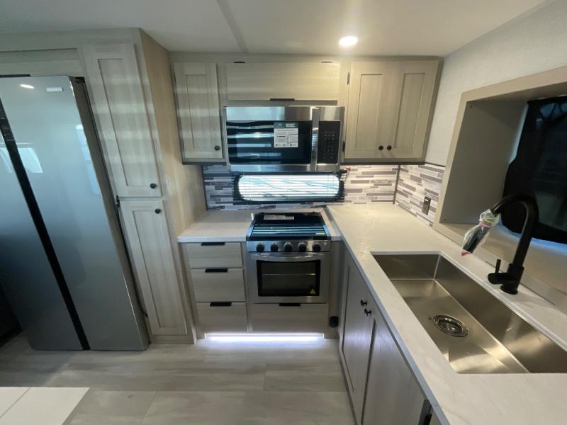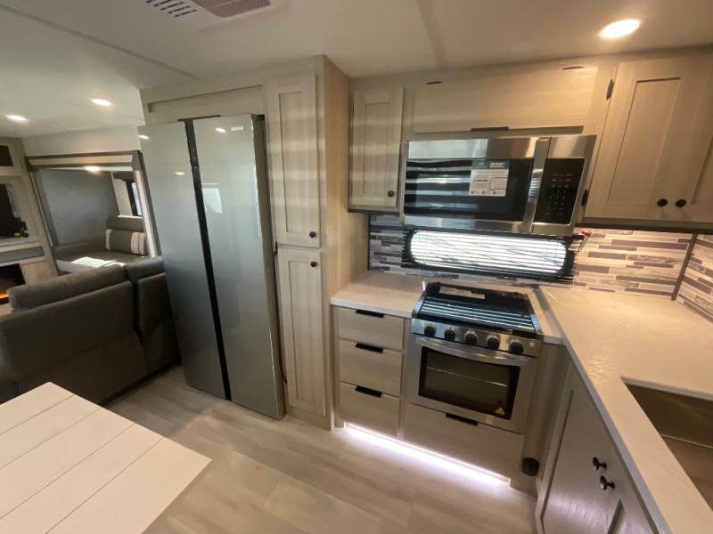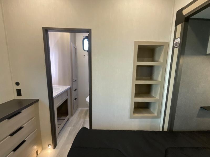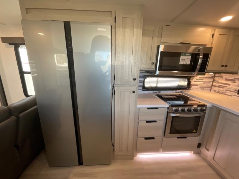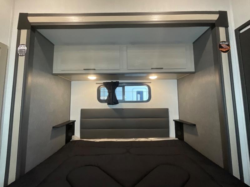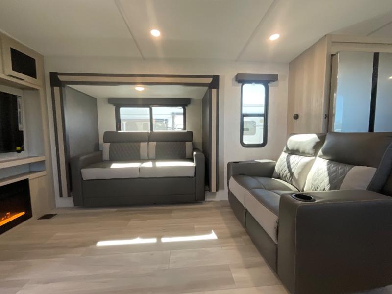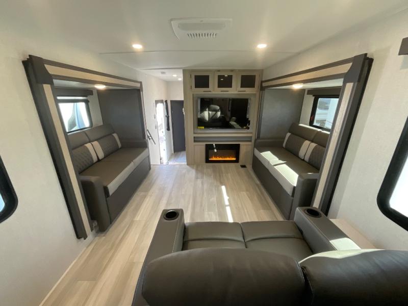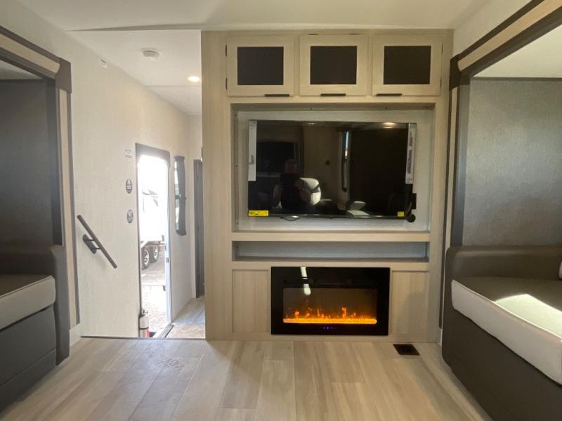 With any Wildcat fifth wheel by Forest River, you will enjoy affordable luxury at every turn. These models are constructed with residential fiberglass insulation in the roof and floor, a 4'x6' sectioned underbelly armor, and a vacuum bonded, welded aluminum structure for added strength and durability. You will also find seamless roto-cast holding tanks, an outdoor shower, and 4-point auto leveling for quick and easy setup. Each model includes a best-in-class, high-efficiency 35,000 BTU furnace, along with an electric fireplace with thermostat control and remote, plus a 60,000 BTU tankless water heater for added convenience. There are carpet-free living spaces, residential backsplash, motion lighting throughout, and many more comforts!